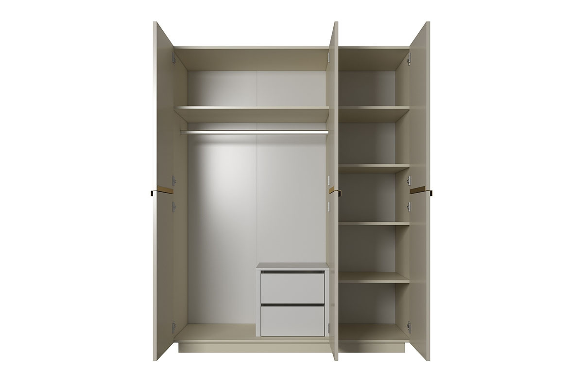 Šatní skříň Nicole 150 cm se 2 skrytými zásuvkami - kašmír / zlaté úchytky, šířka: 150, výška: 207, hloubka: 62