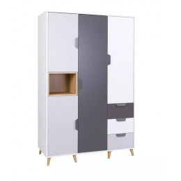 Šatní skříň POKER R1, Bílá/Grafit/Dub lefkas/Šedá