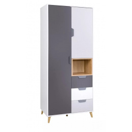 Šatní skříň POKER R2, Bílá/Grafit/Dub lefkas/Šedá