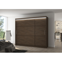 Šatní skříň s posuvnými dveřmi a LED osvětlením ANTOS 250 Choco+Choco