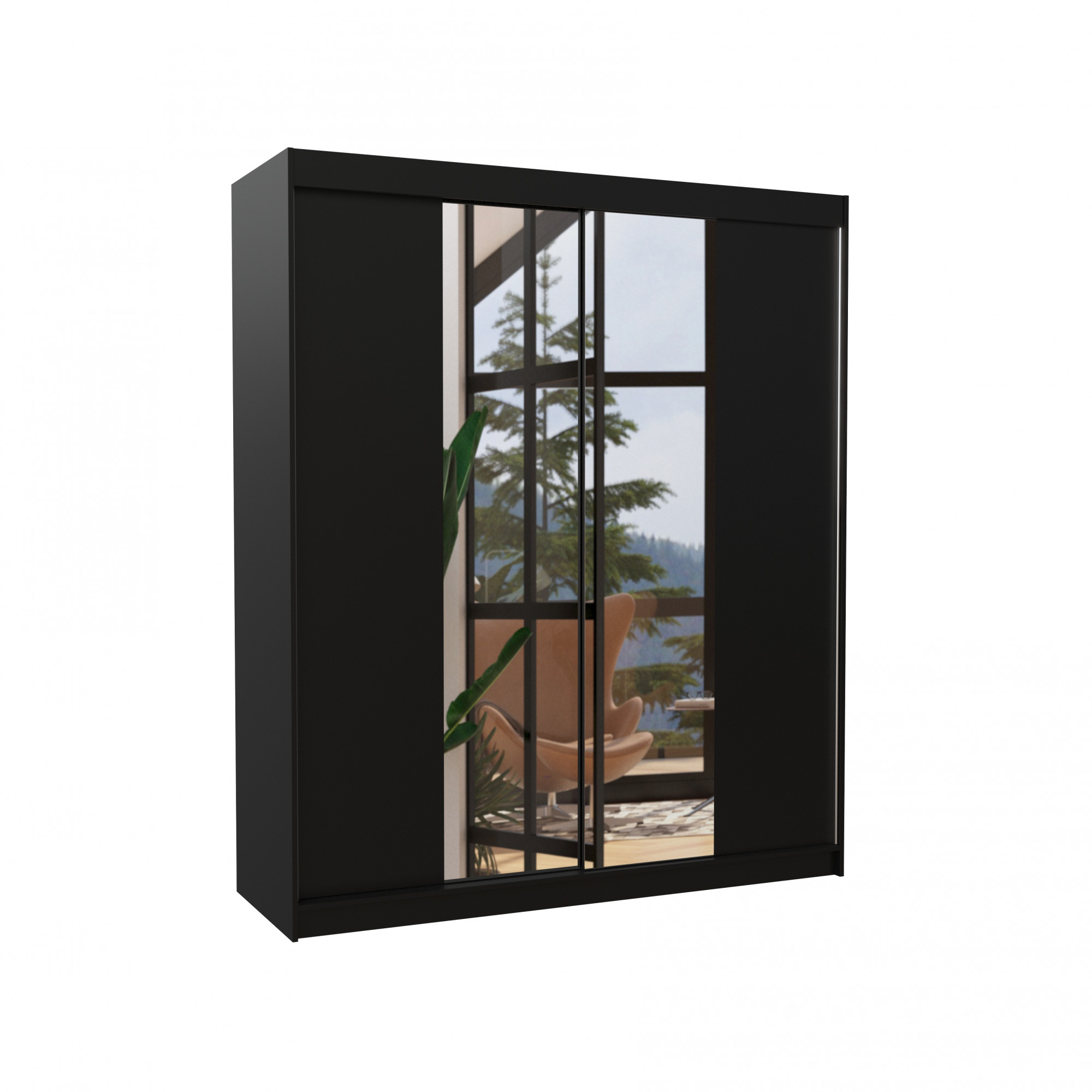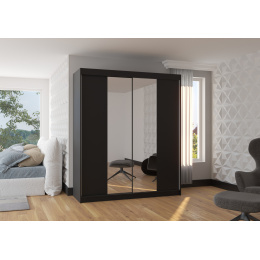 Šatní skříň s posuvnými dveřmi a zrcadlem BALANCE 180 Černá+Černá