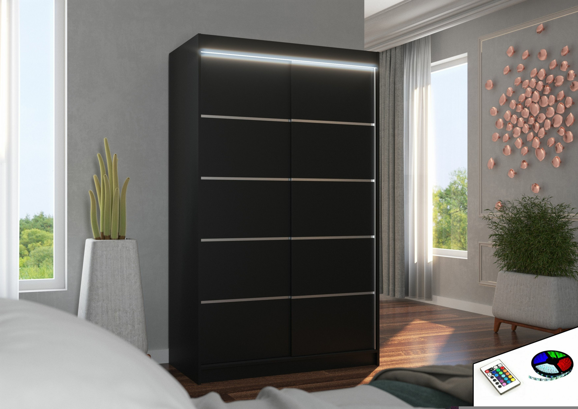 Posuvná skříň s LED osvětlením BENISSO 120 Černá+Černá