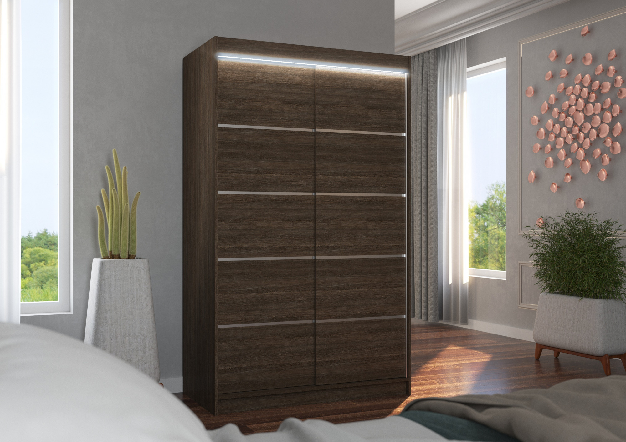 Posuvná skříň s LED osvětlením BENISSO 120 Choco+Choco
