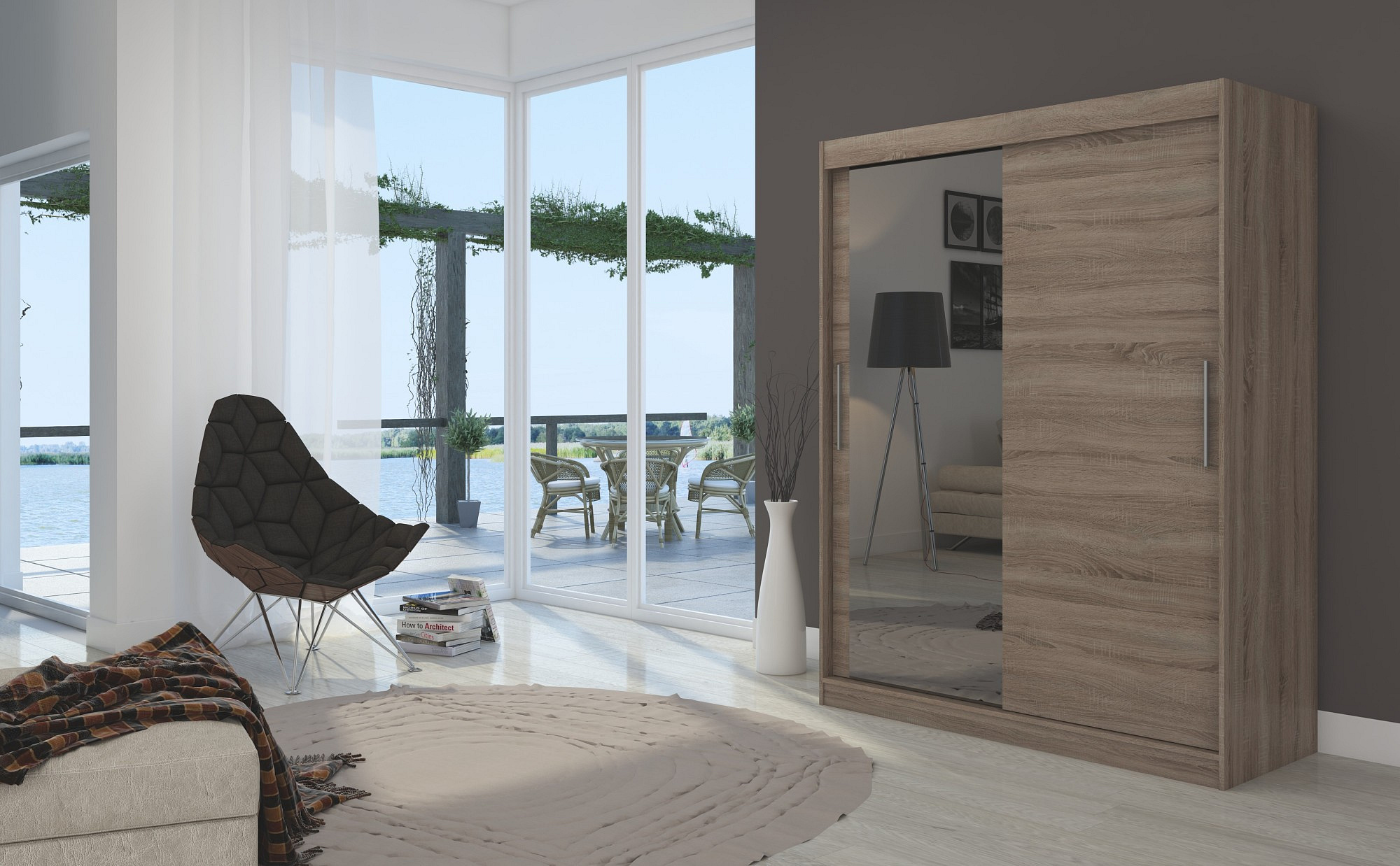 Šatní skříň s posuvnými dveřmi a zrcadlem BIANCO je ideálním způsobem, jak uspořádat prostor. Nábytek je vybaven prostornými policemi a tyčí, na kterou můžete pověsit šaty, obleky, svrchní oděvy nebo košile. Na čelní straně bylo připevněno zrcadlo, které opticky zvětšuje prostor. Díky tomu, že skříň je posuvná, nemusíte vyčleňovat další místo na otevření dveří, což z ní činí ideální řešení pro malý pokoj nebo úzkou předsíň.