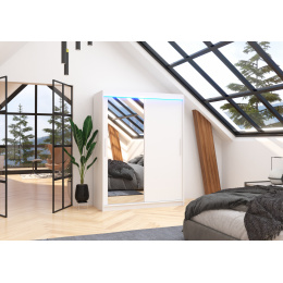 Posuvná skříň se zrcadlem a LED osvětlením BIANCO 150 Bílá+Bílá