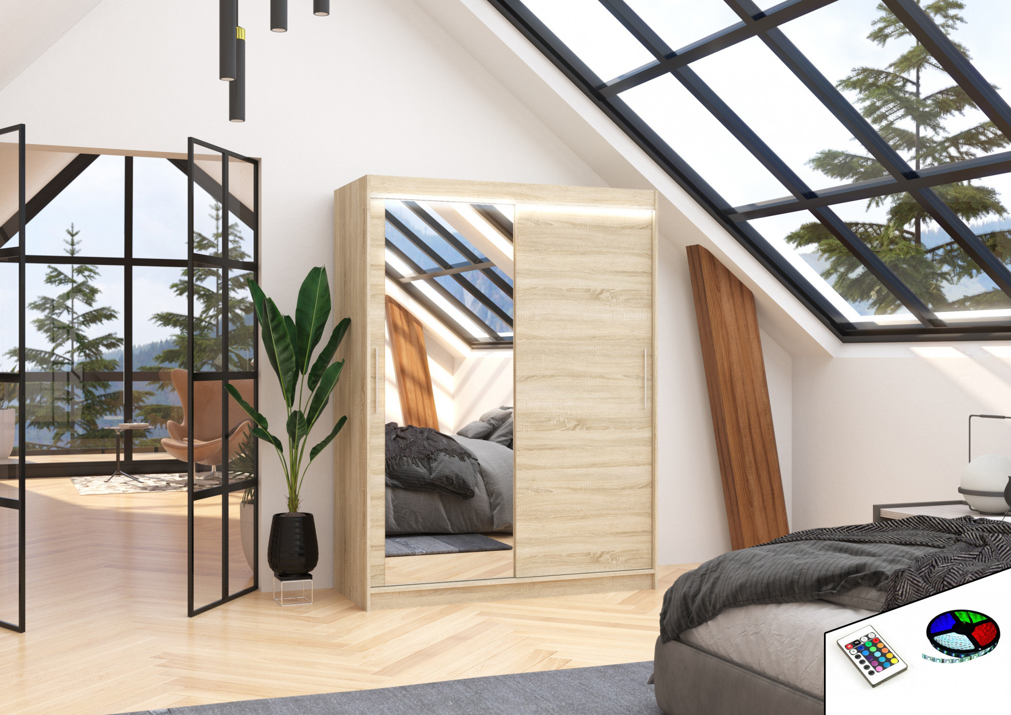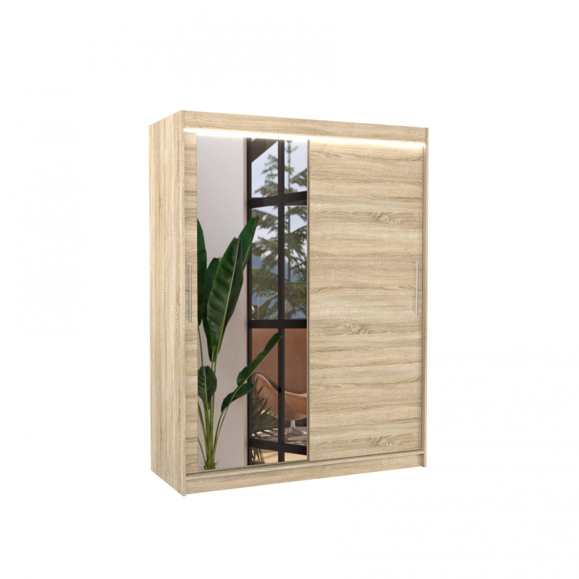 Posuvná skříň se zrcadlem a LED osvětlením BIANCO 150 Sonoma+Sonoma