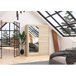 Posuvná skříň se zrcadlem BIANCO 150 Sonoma+Sonoma