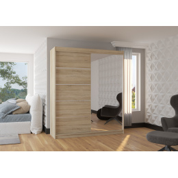 Šatní skříň s posuvnými dveřmi a zrcadlem CARO 180 Sonoma+Sonoma