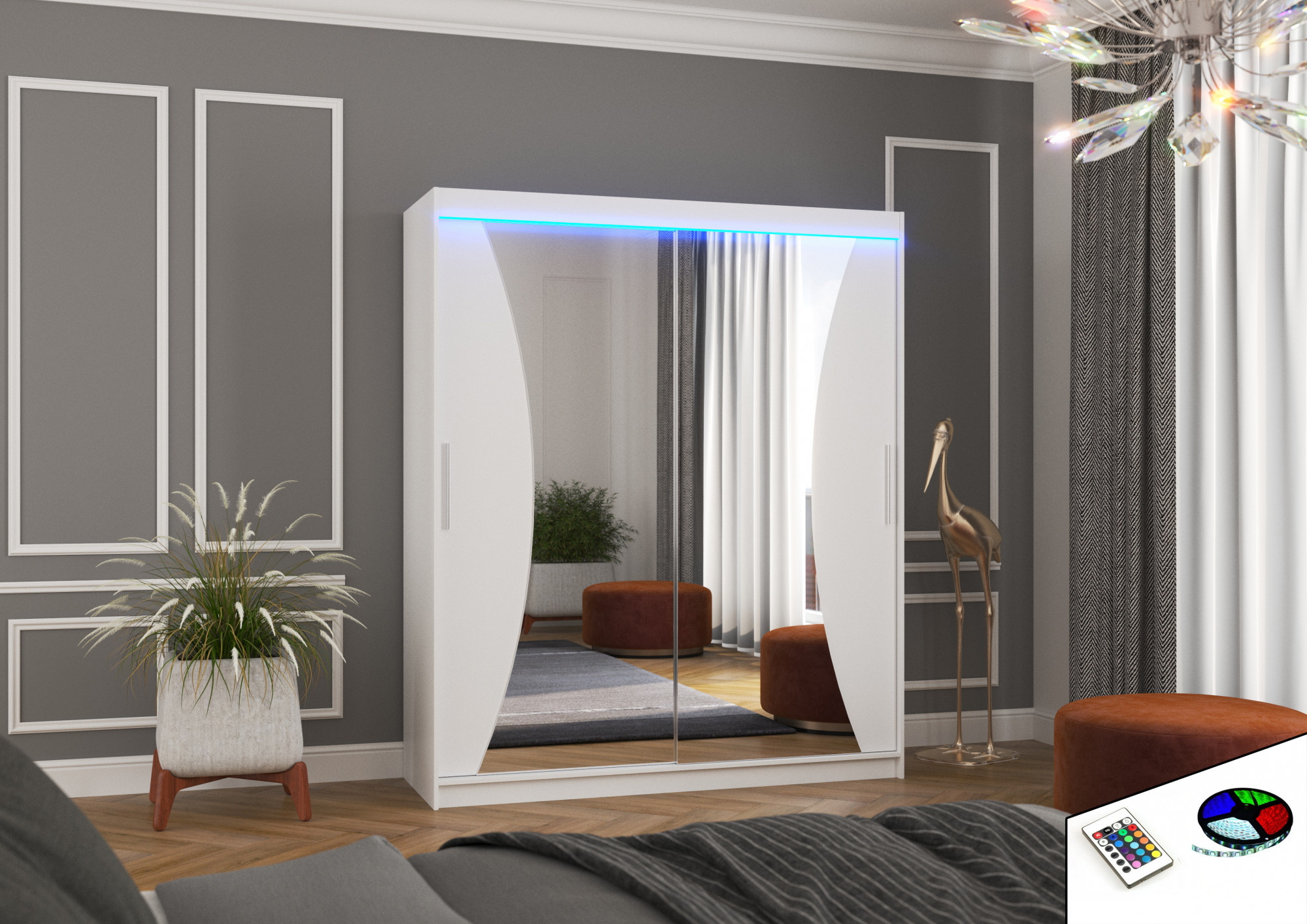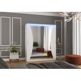 Posuvná skříň se zrcadlem a LED osvětlením CHARLOTTE 180 Bílá+Bílá