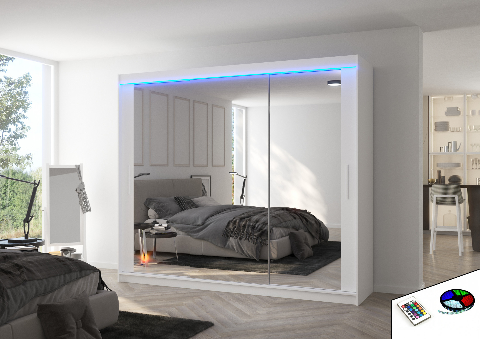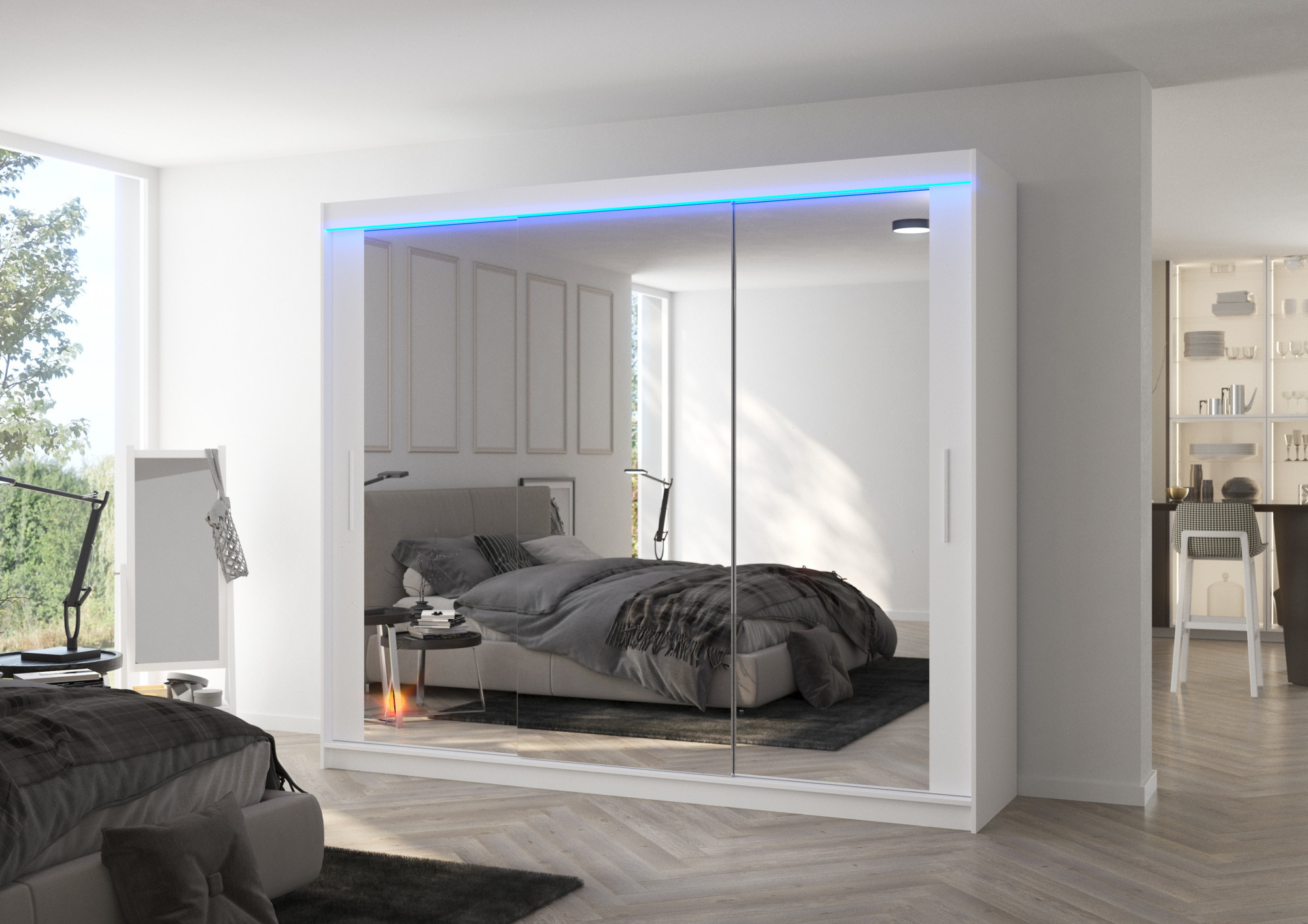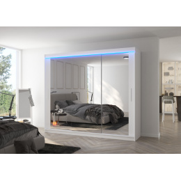 Posuvná skříň se zrcadlem a LED osvětlením CHESTER 250 Bílá+Bílá