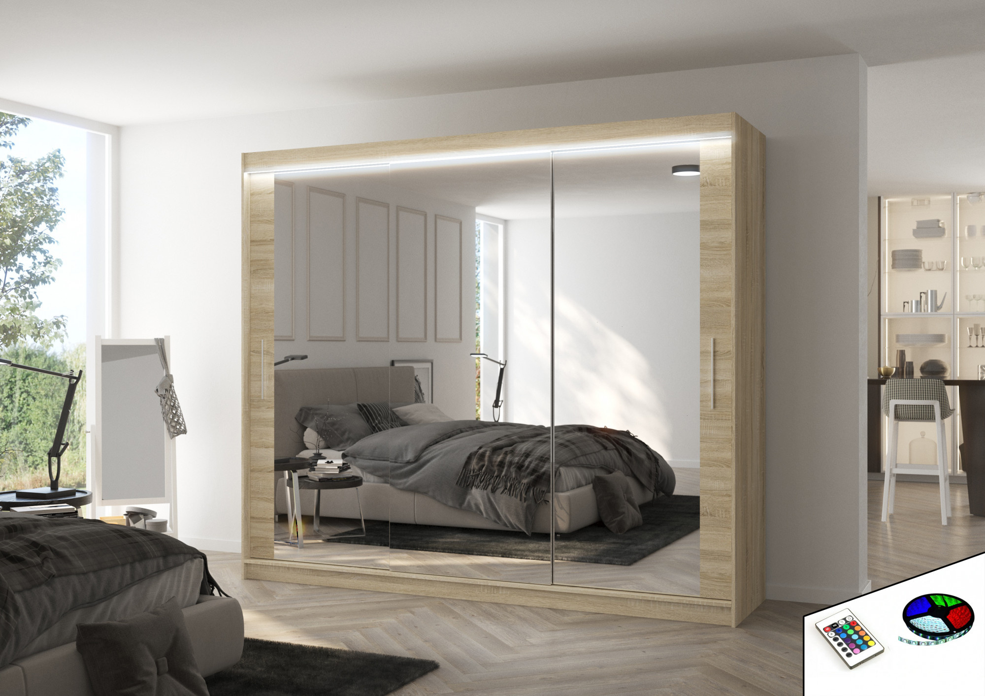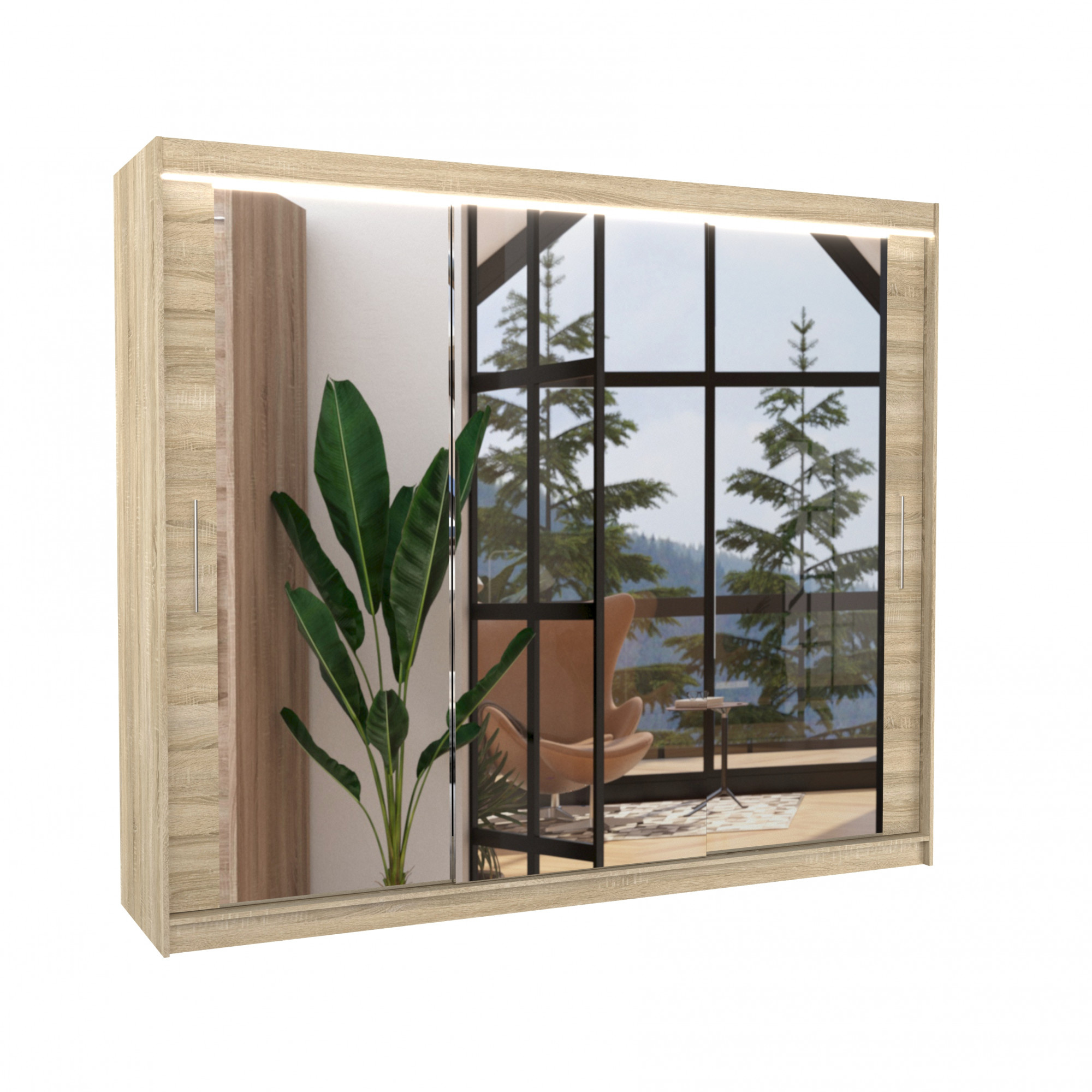 Posuvná skříň se zrcadlem a LED osvětlením CHESTER 250 Sonoma+Sonoma