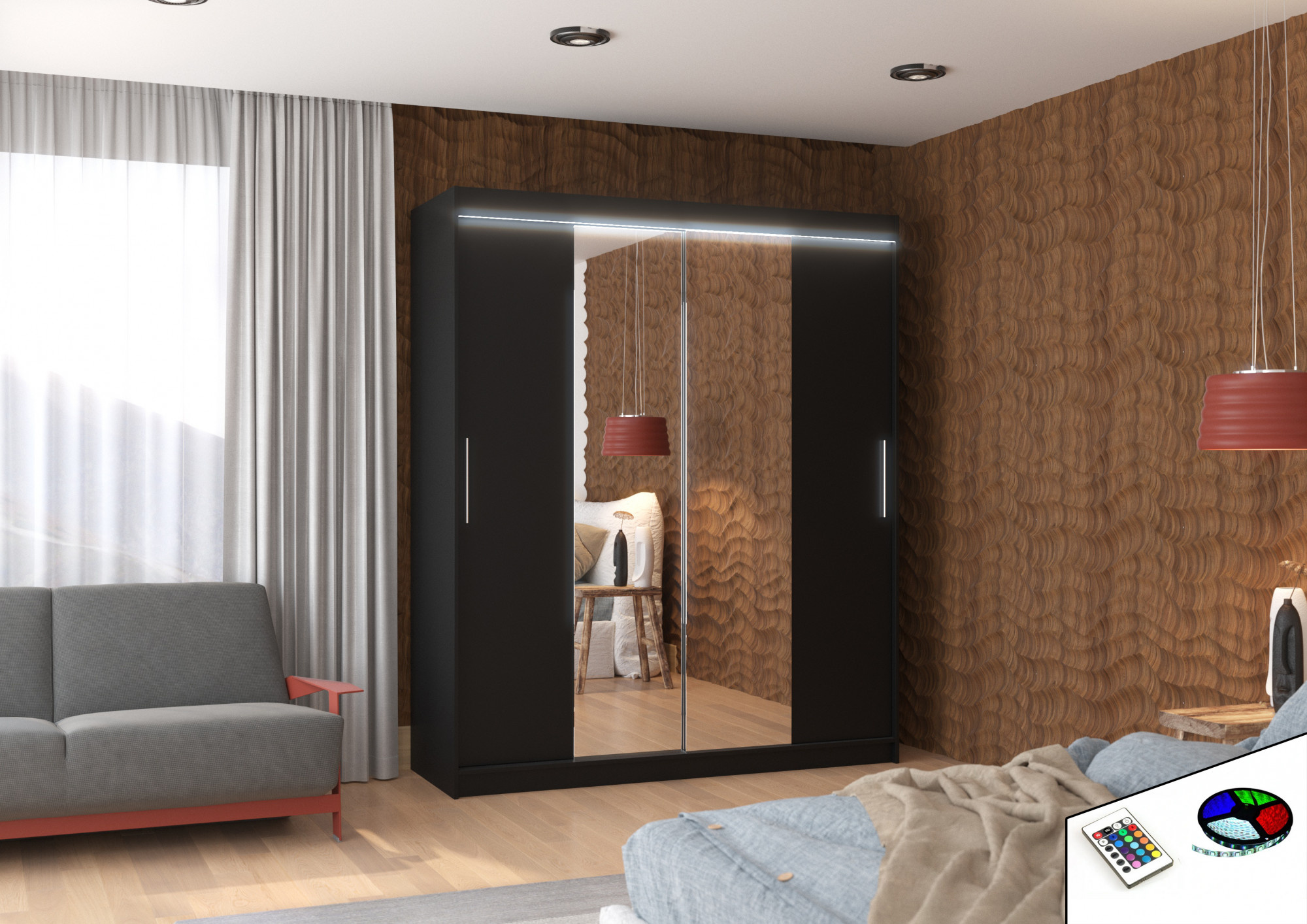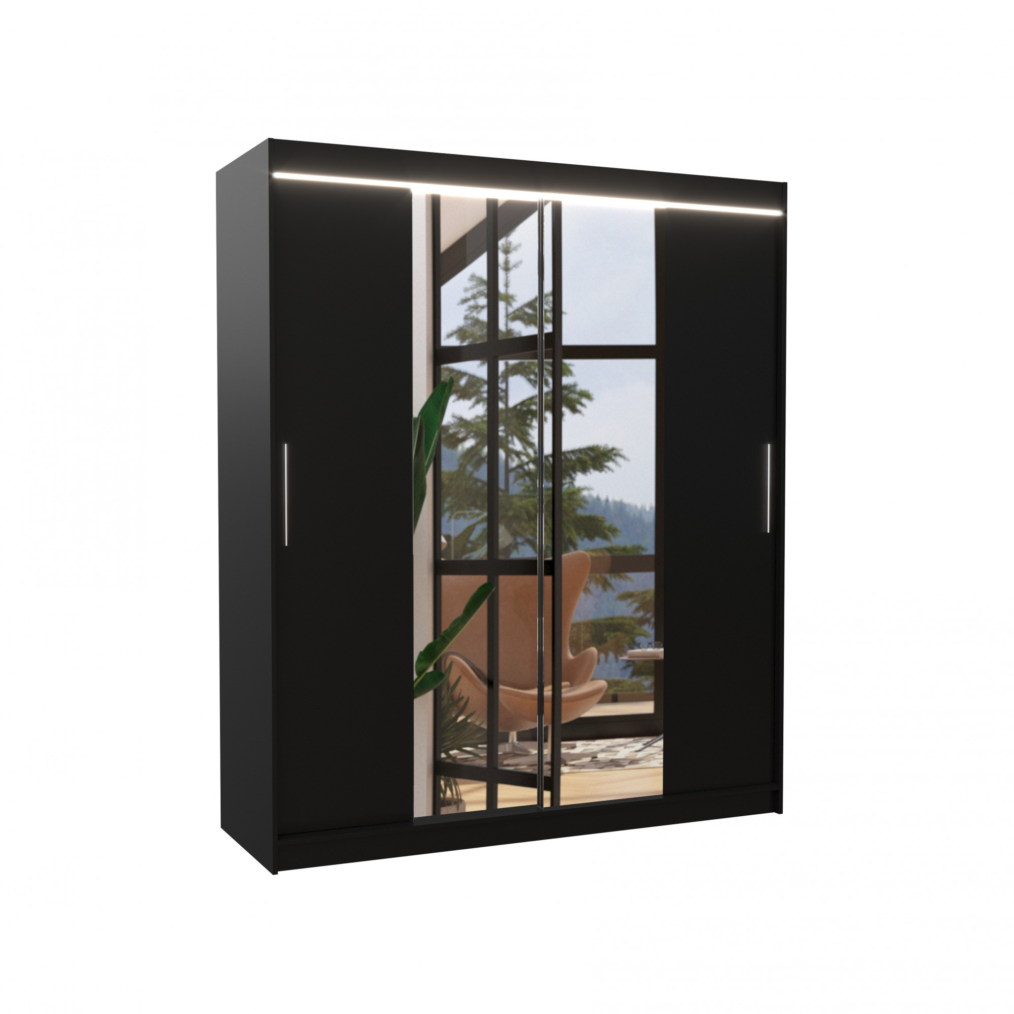 Posuvná skříň se zrcadlem a LED osvětlením DALLAS 180 Černá+Černá