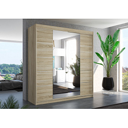 Šatní skříň s posuvnými dveřmi a zrcadlem DALMATIA 200 Sonoma+Sonoma