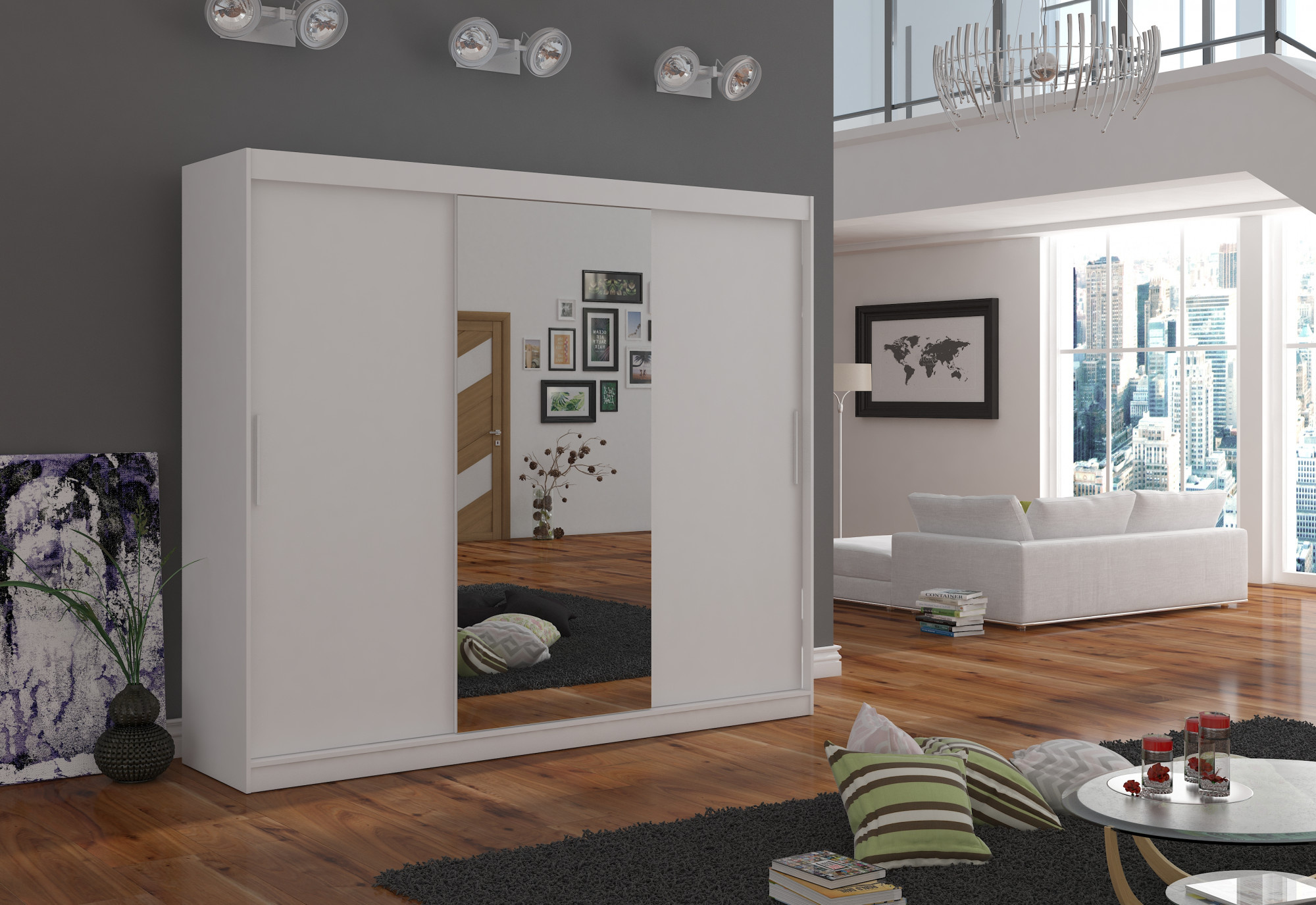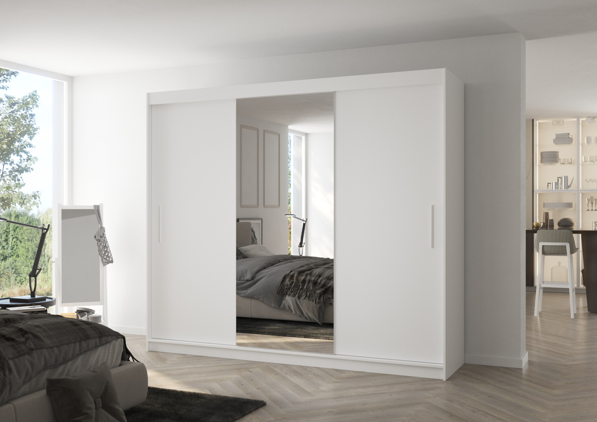 Posuvná skříň se zrcadlem DENIS 250 Bílá+Bílá