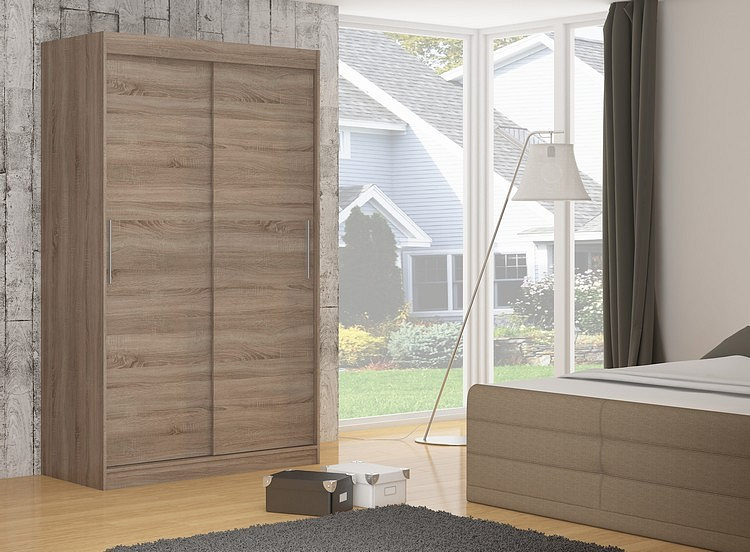 Šatní skříň s posuvnými dveřmi DENVR je ideálním způsobem, jak uspořádat prostor. Nábytek je vybaven prostornými policemi a tyčí, na kterou můžete pověsit šaty, obleky, svrchní oděvy nebo košile. Díky tomu, že skříň je posuvná, nemusíte vyčleňovat další místo na otevření dveří, což z ní činí ideální řešení pro malý pokoj nebo úzkou předsíň.