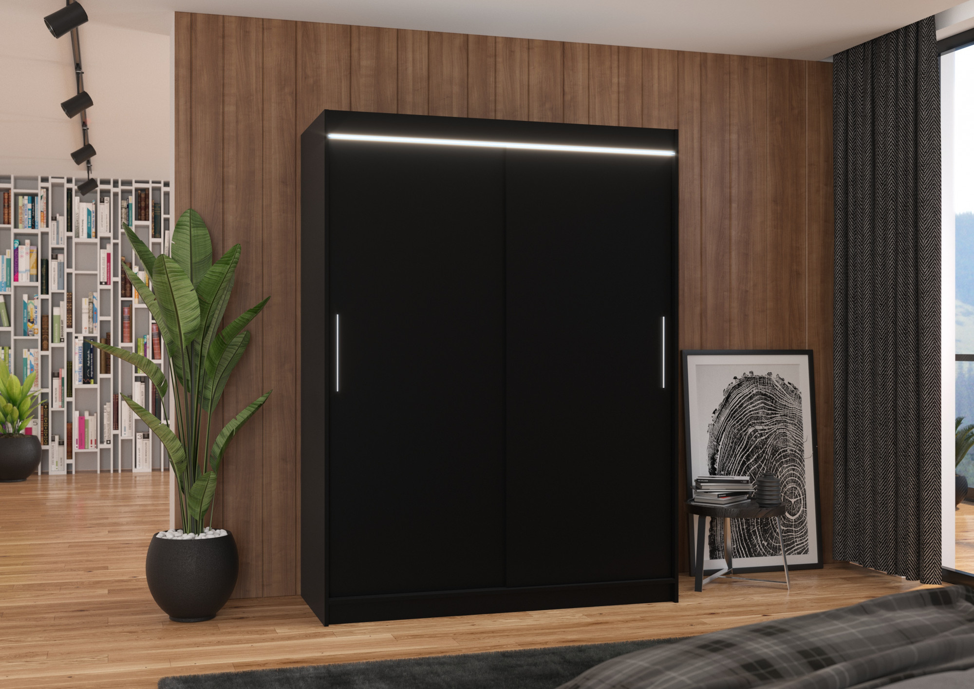 Posuvná skříň s LED osvětlením DENVER 150 Černá+Černá