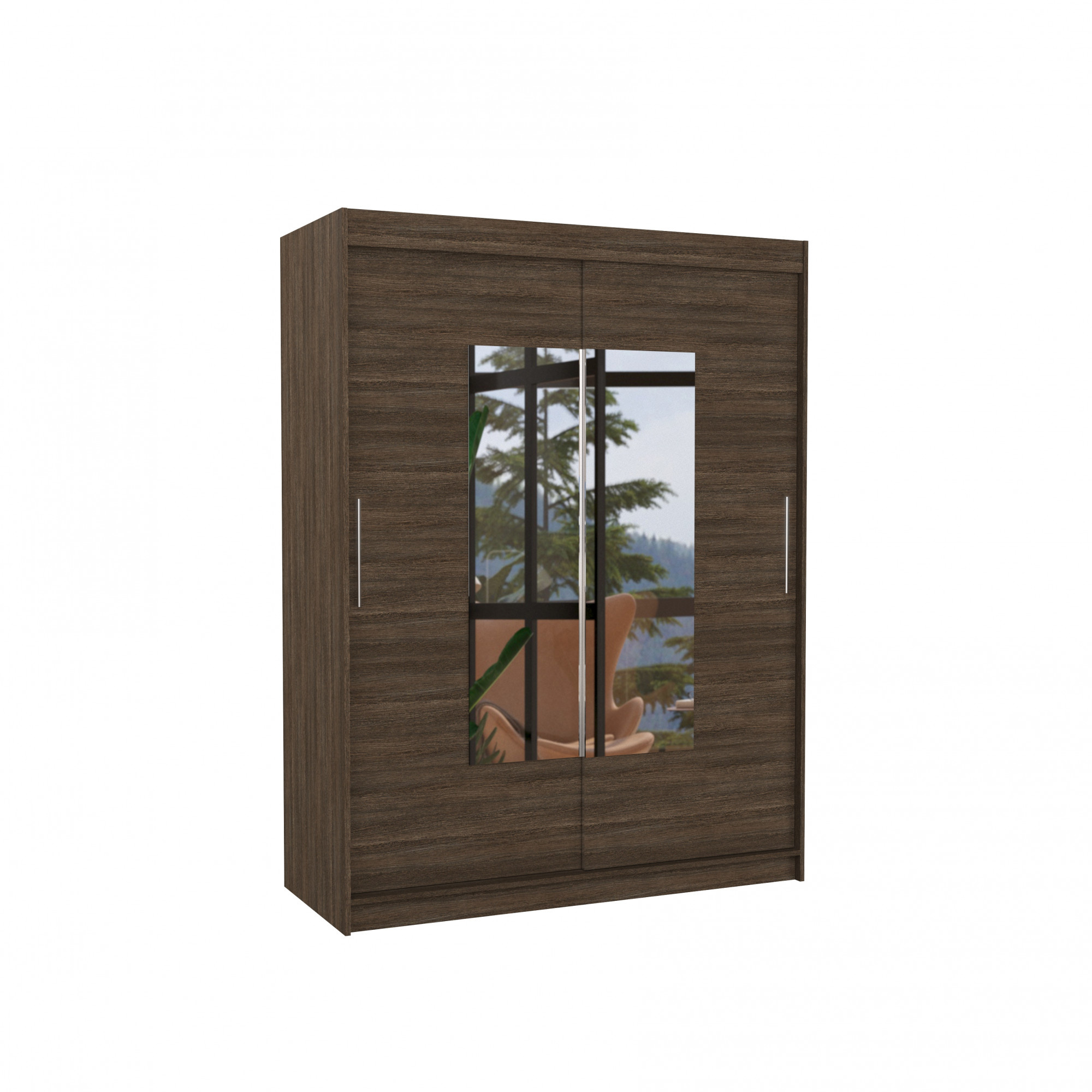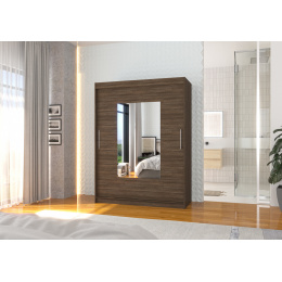 Šatní skříň s posuvnými dveřmi a zrcadlem DORRIGO 150 Choco+Choco