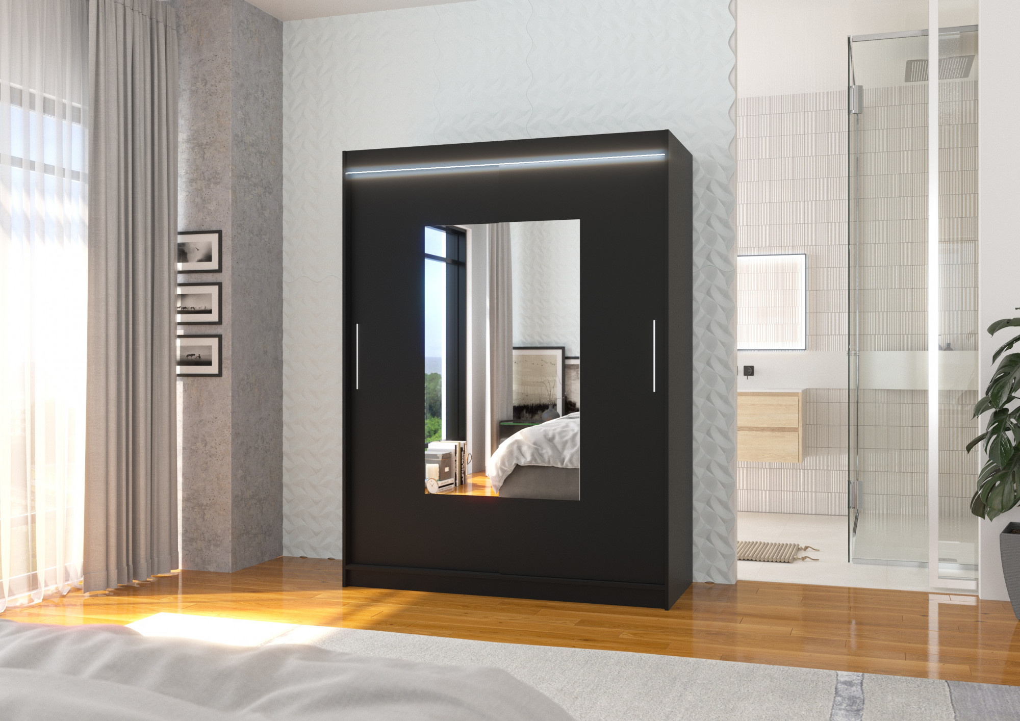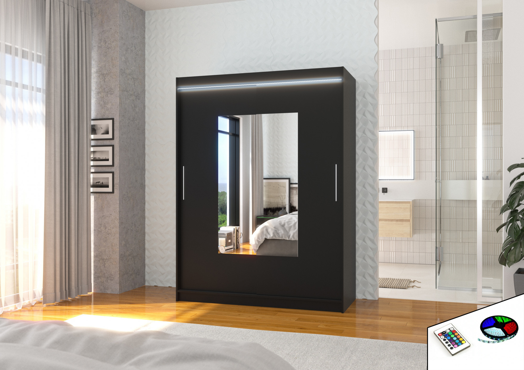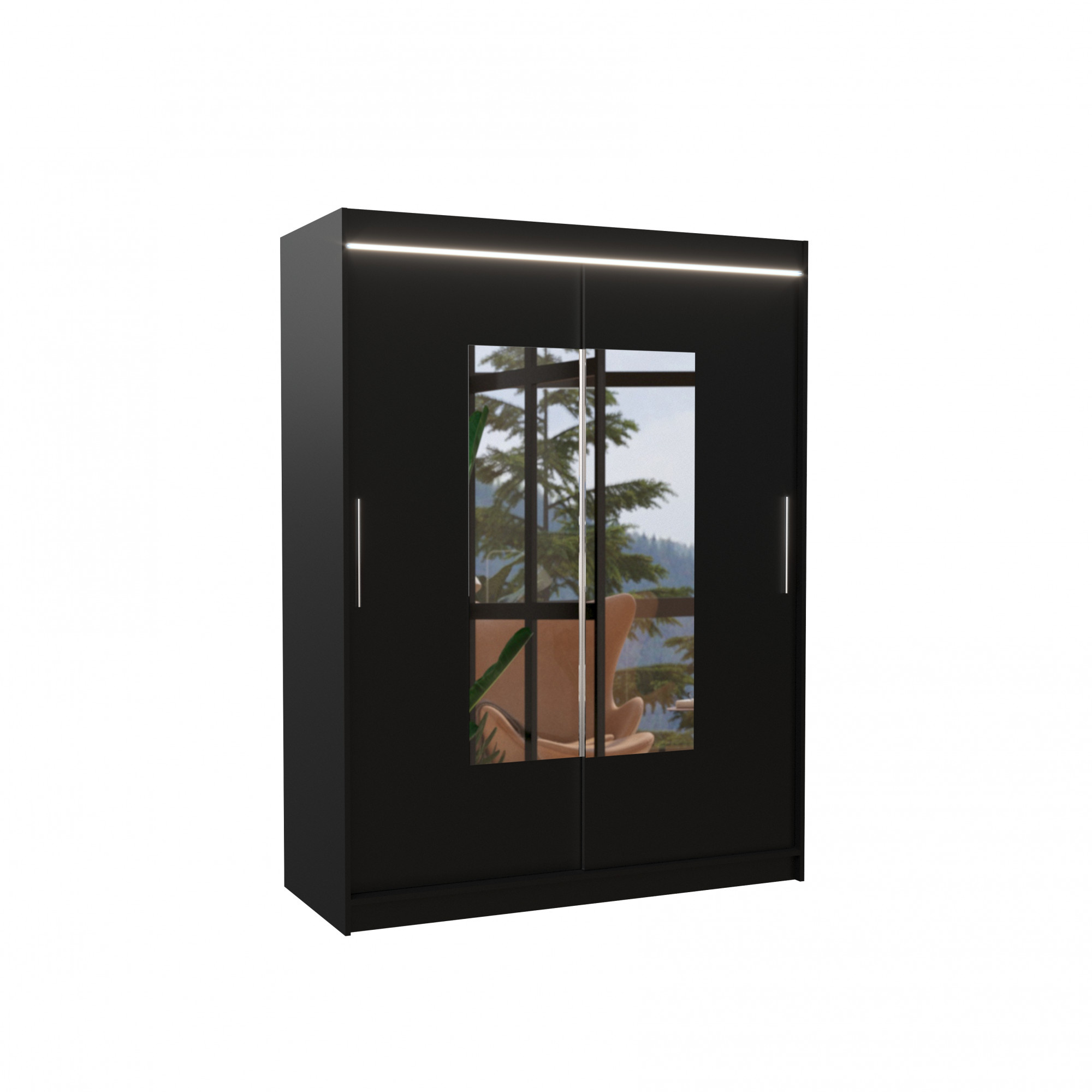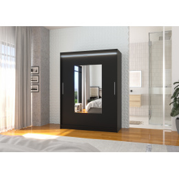 Posuvná skříň se zrcadlem a LED osvětlením DORRIGO 150 Černá+Černá