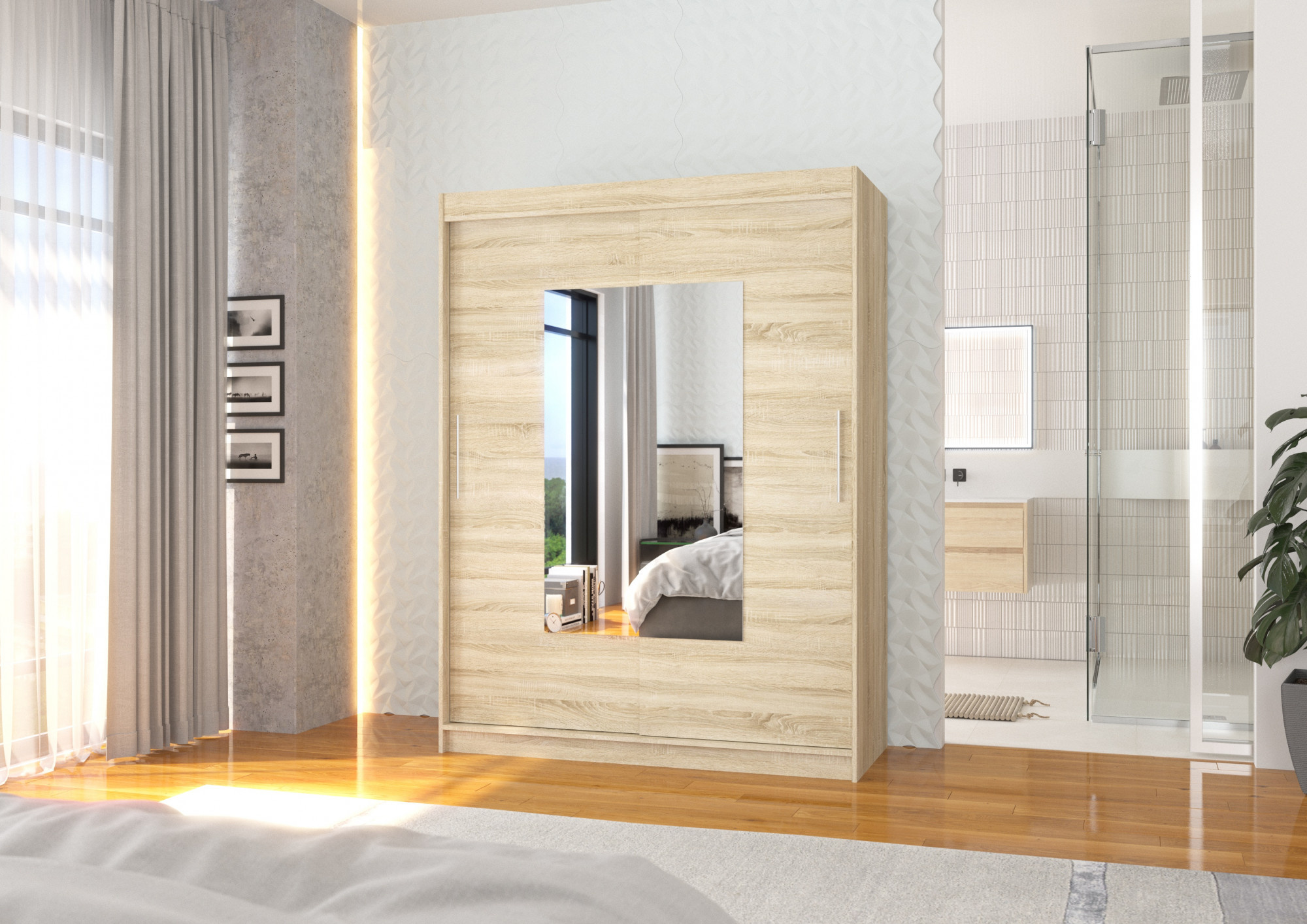 Šatní skříň s posuvnými dveřmi a zrcadlem DORRIGO 150 Sonoma+Sonoma