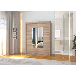 Posuvná skříň se zrcadlem DORRIGO je ideálním způsobem, jak uspořádat prostor. Nábytek je vybaven prostornými policemi a tyčí, na kterou můžete pověsit šaty, obleky, svrchní oděvy nebo košile. Na čelní stranu byla připevněna zrcadla, která opticky zvětšují prostor. Díky tomu, že skříň je posuvná, nemusíte vyčleňovat další místo na otevření dveří, což z ní činí ideální řešení pro malý pokoj nebo úzkou předsíň.