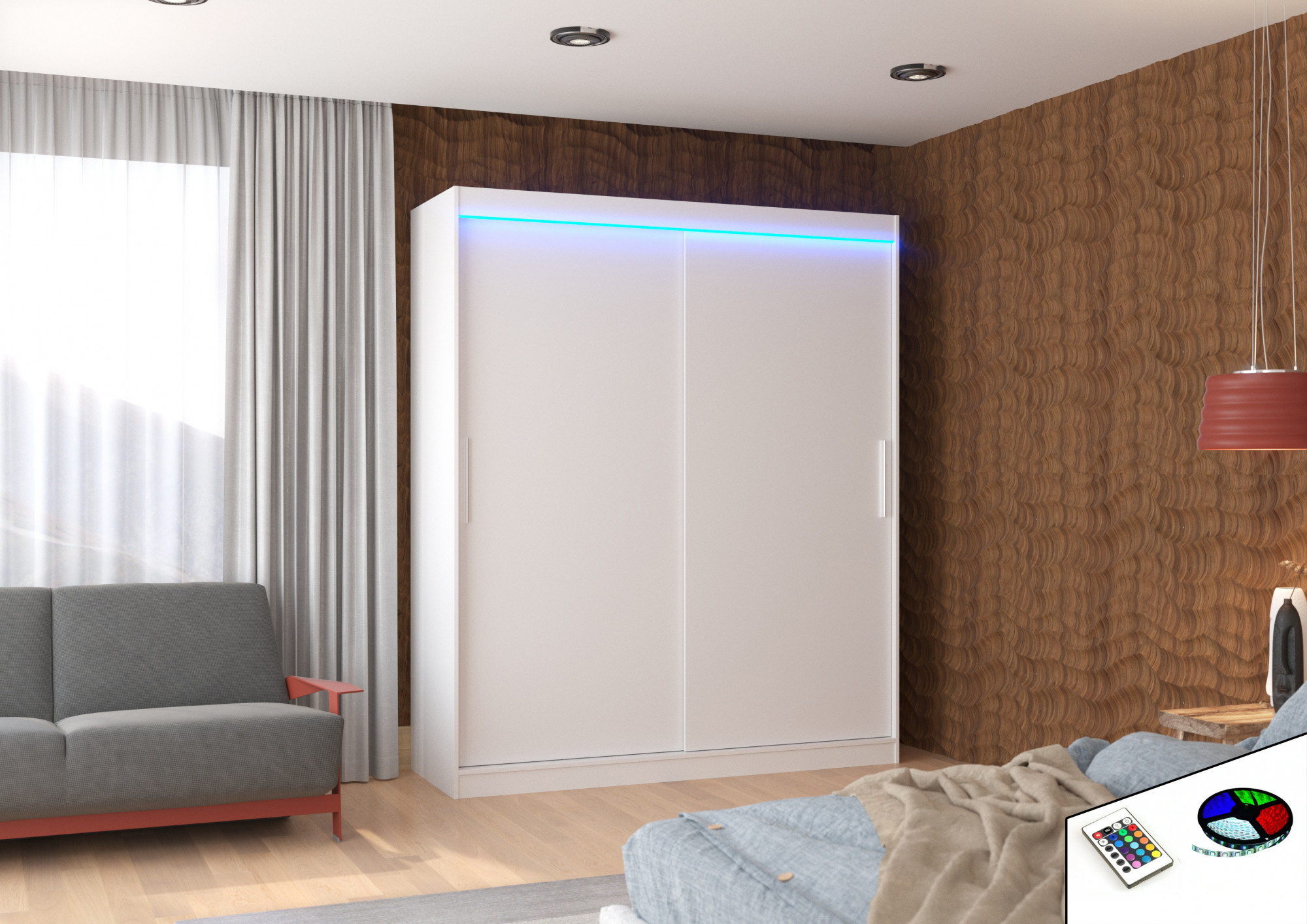 Posuvná skříň s LED osvětlením LINCOLN 180 Bílá+Bílá