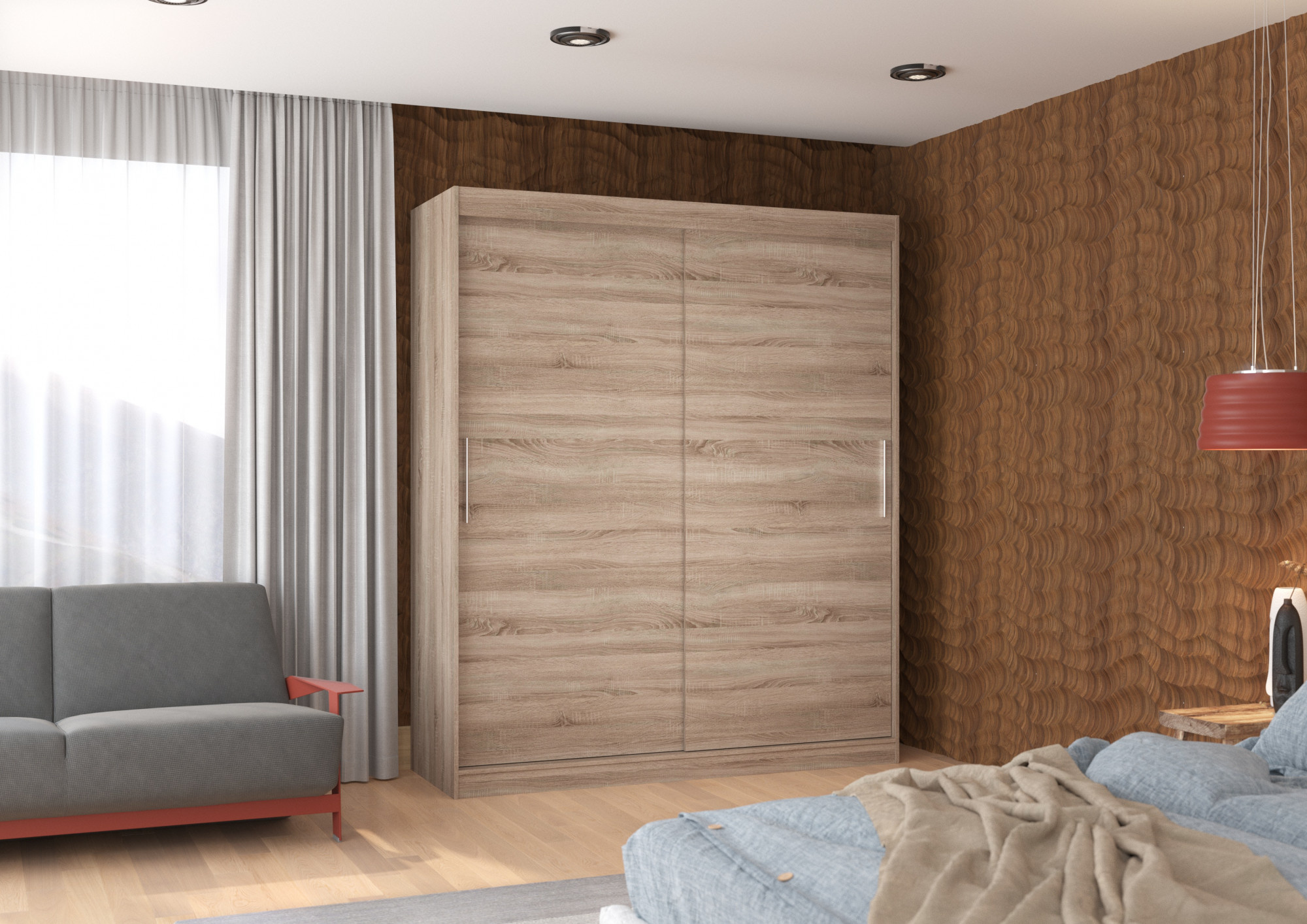Posuvná skříň LINCOLN je ideálním způsobem, jak uspořádat prostor. Nábytek je vybaven prostornými policemi a tyčí, na kterou můžete pověsit šaty, obleky, svrchní oděvy nebo košile. Díky tomu, že skříň je posuvná, nemusíte vyčleňovat další místo na otevření dveří, což z ní činí ideální řešení pro malý pokoj nebo úzkou předsíň.