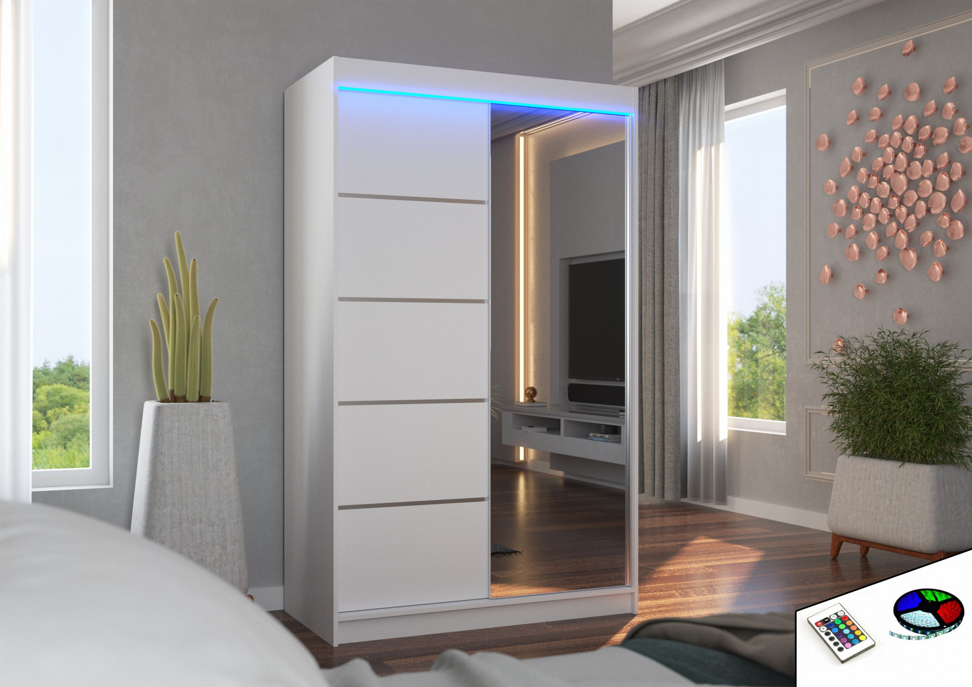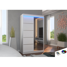 Posuvná skříň se zrcadlem a LED osvětlením NICEA 120 Bílá+Bílá