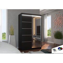 Šatní skříň s posuvnými dveřmi, zrcadlem a LED osvětlením NICEA 120 Černá+Černá