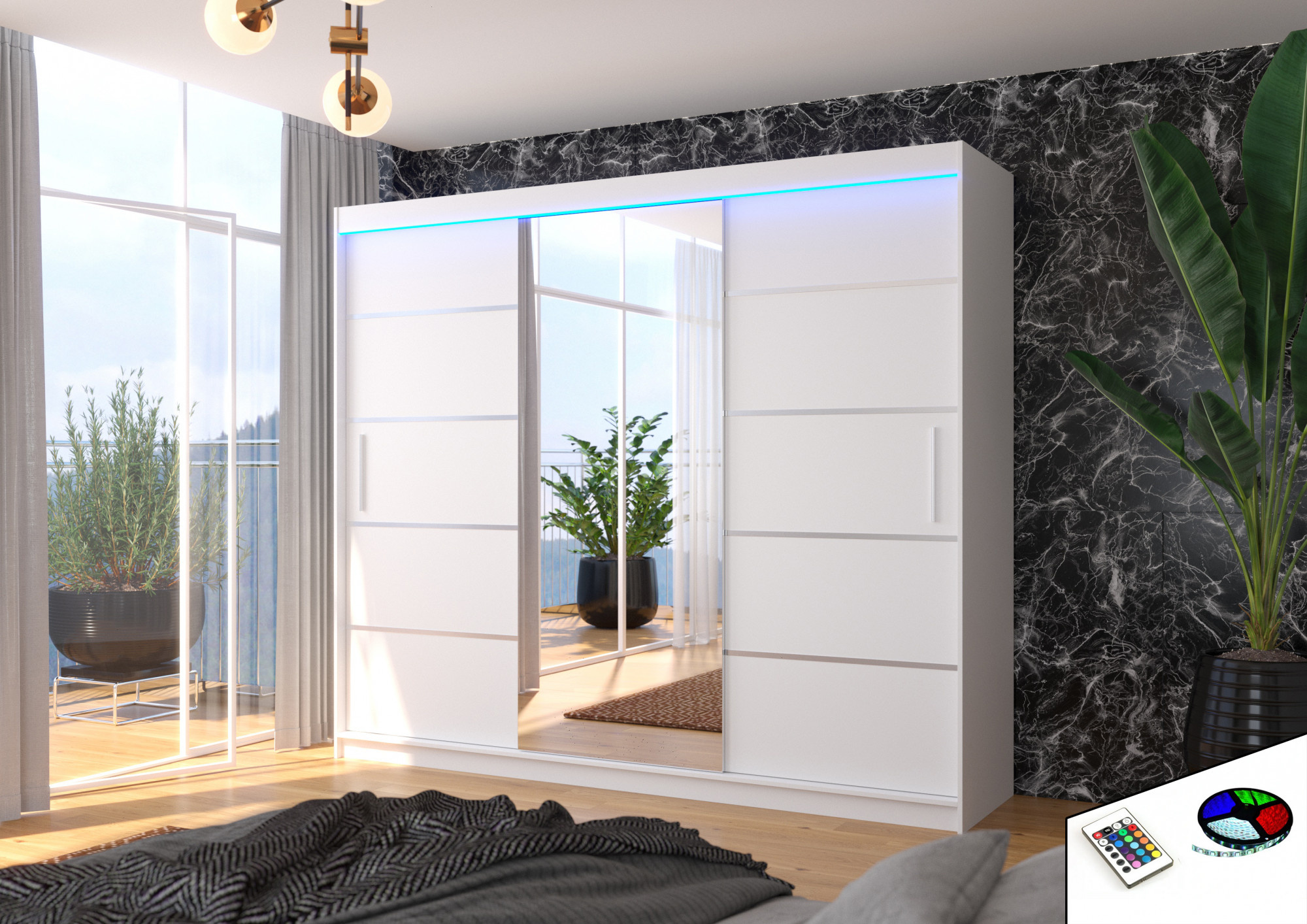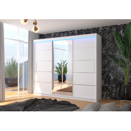 Posuvná skříň se zrcadlem a LED osvětlením SALTO 250 Bílá+Bílá