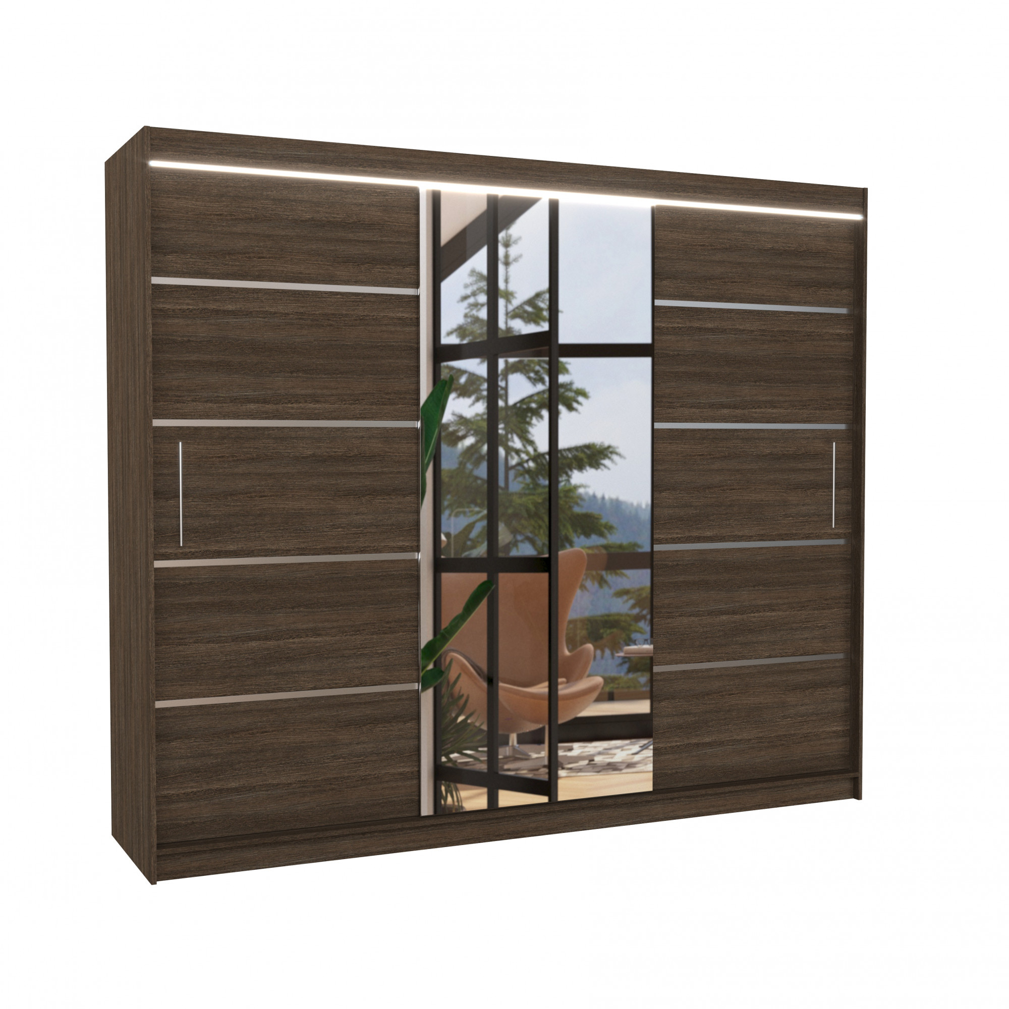 Posuvná skříň se zrcadlem a LED osvětlením SALTO 250 Choco+Choco