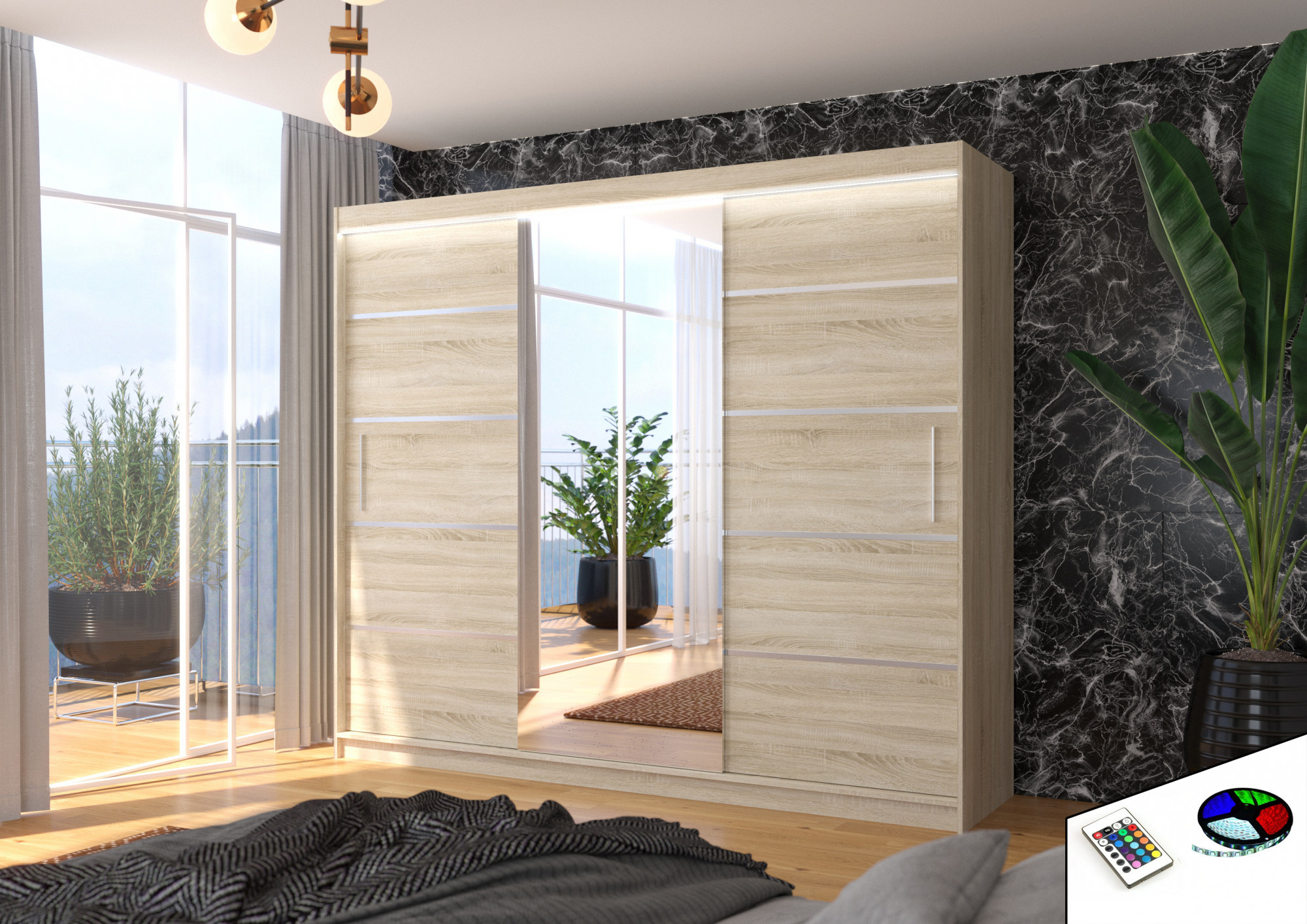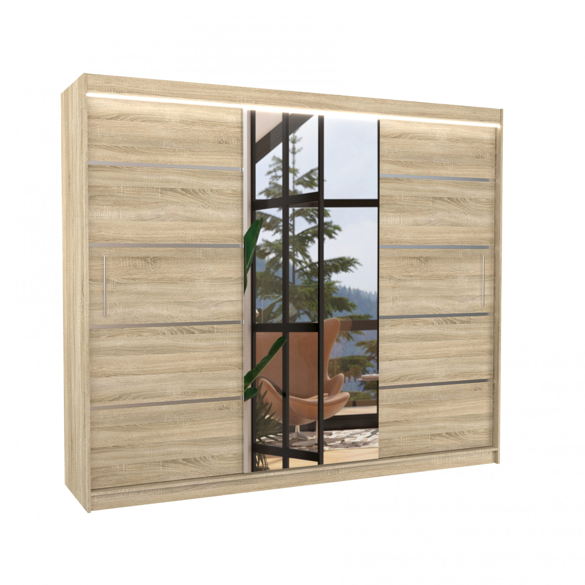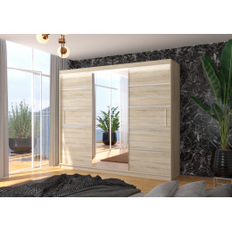 Posuvná skříň se zrcadlem a LED osvětlením SALTO 250 Sonoma+Sonoma