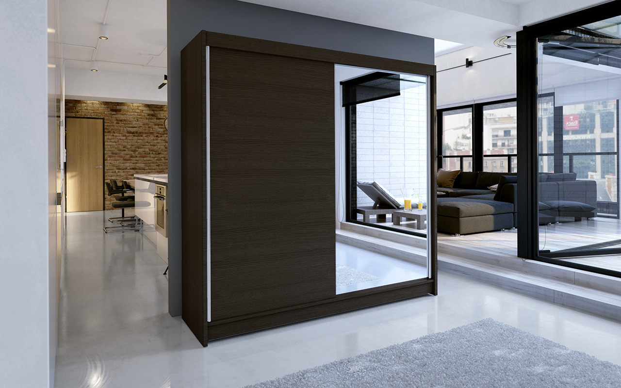 Šatní skříň s posuvnými dveřmi a zrcadlem VIKI 180 Choco+Choco