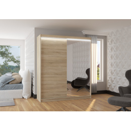Posuvná skříň se zrcadlem a LED osvětlením VIKI 180 Sonoma+Sonoma