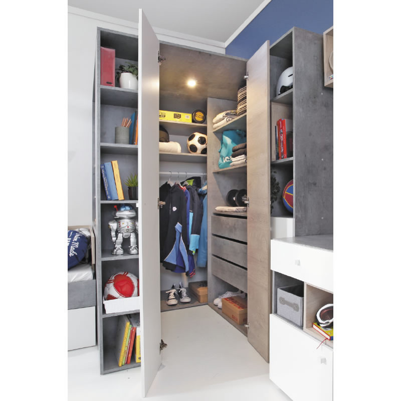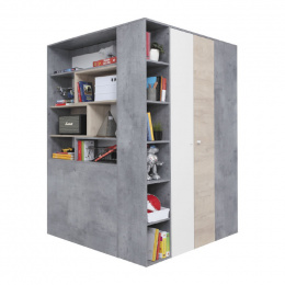 Skříň SIGMA - SI1, Bílý Lux + Beton + Dub
