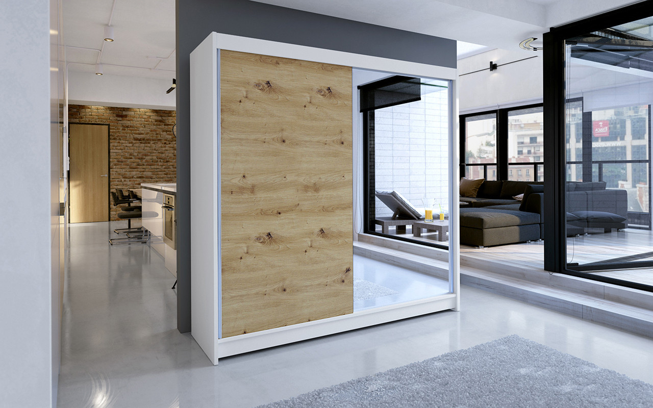 Šatní skříň TAISA I 180, Bílá/ Dub artisan