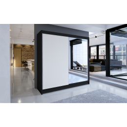 Skříň je vyrobena z kvalitního lamina. Díky svému vnitřnímu uspořádání nabízí dostatek úložného prostoru, posuvné dveře šetří prostor a zrcadlo ho opticky zvětšuje. Skříň je vhodná do ložnice, dětského nebo studentského pokoje, do předsíně i kanceláře. Vnitřní uspořádání skříně je vyobrazeno na fotografii. Skříň je dodávána v demontu. Součástí je i skleněné zrcadlo, které je nalepeno na jedné části dveří skříně a také montážní plánek včetně všech potřebných spojovacích materiálů. Vyobrazené dekorace nejsou v ceně.