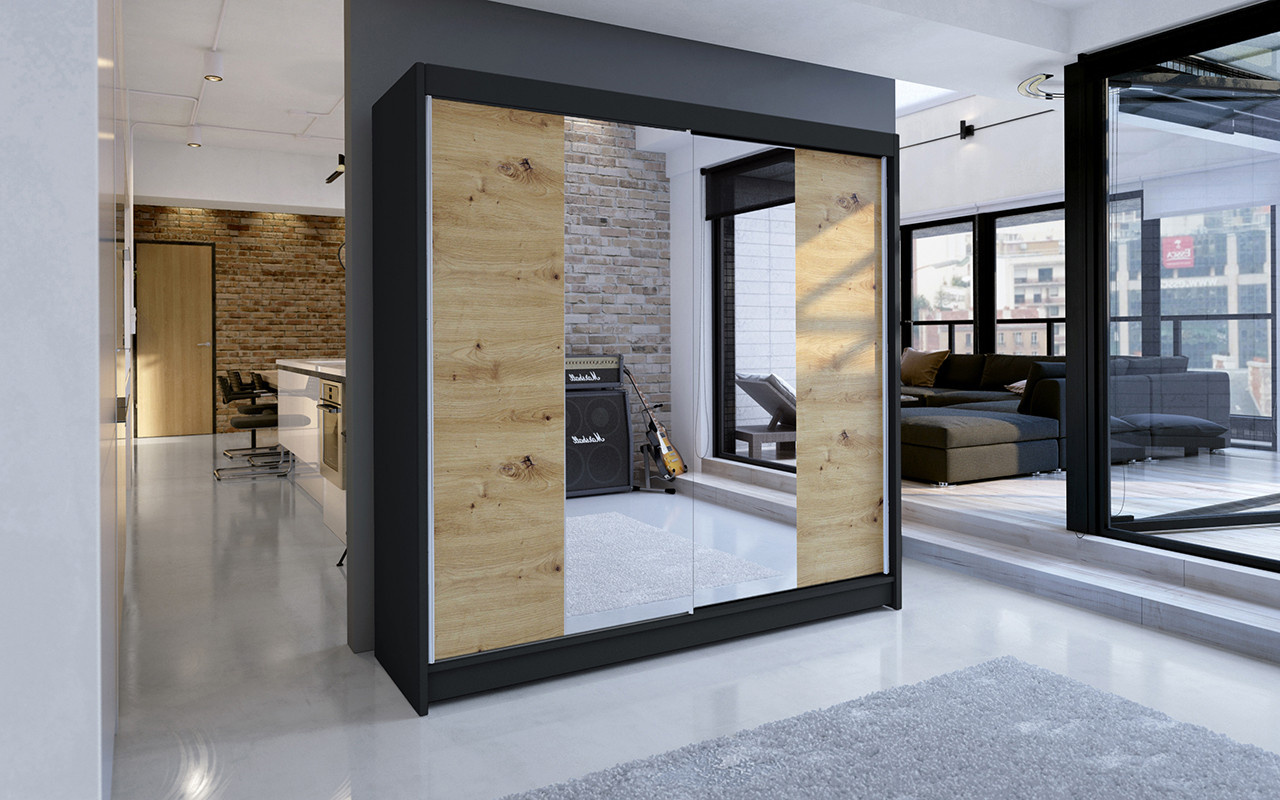 Šatní skříň TAISA II 180, Černá/Dub artisan