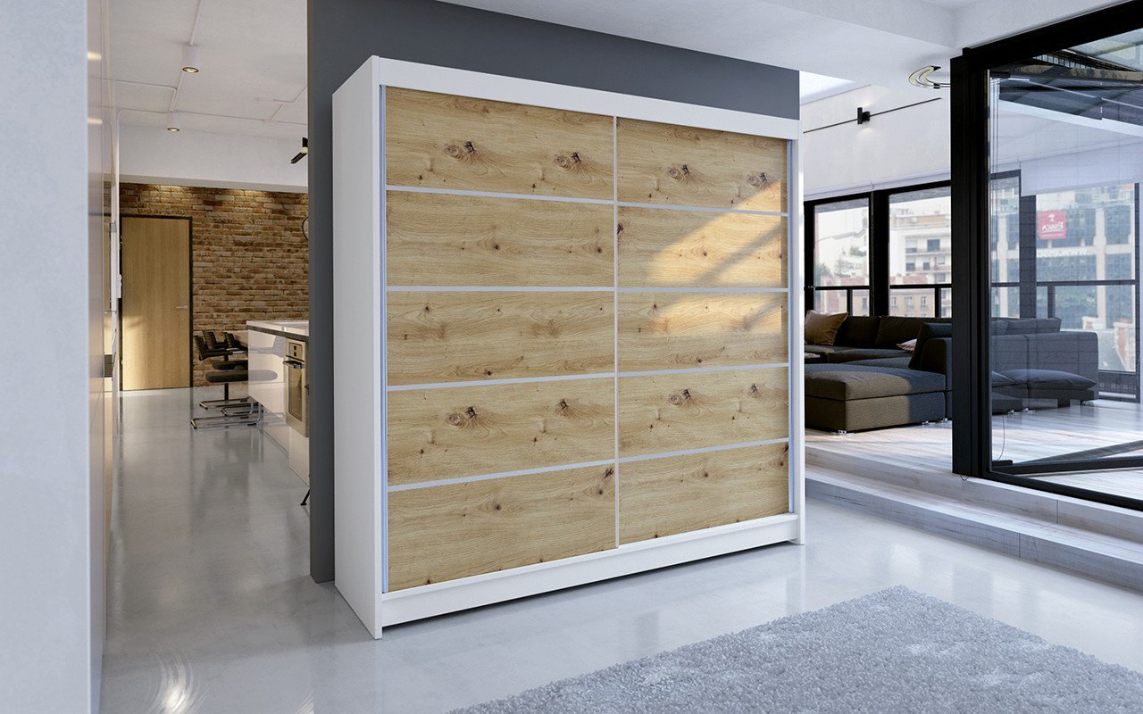 Šatní skříň TAISA IV 180, Bílá/Dub artisan