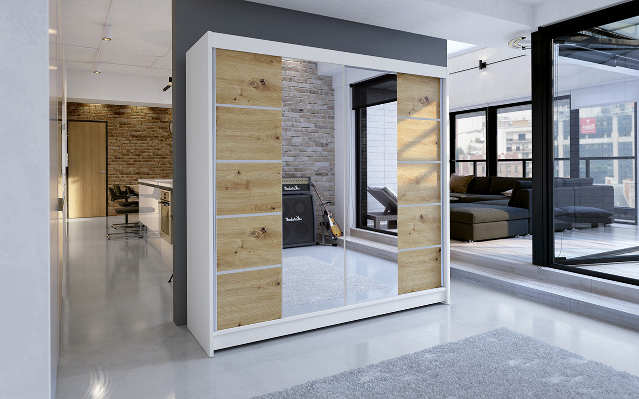Šatní skříň TAISA V 180, Bílá/Dub artisan