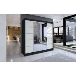 Skříň je vyrobena z kvalitního lamina. Díky svému vnitřnímu uspořádání nabízí dostatek úložného prostoru, posuvné dveře šetří prostor a zrcadlo ho opticky zvětšuje. Skříň je vhodná do ložnice, dětského nebo studentského pokoje, do předsíně i kanceláře. Vnitřní uspořádání skříně je vyobrazeno na fotografii. Skříň je dodávána v demontu. Součástí jsou i skleněná zrcadla, která jsou nalepena na dveřích skříně a také montážní plánek včetně všech potřebných spojovacích materiálů. Vyobrazené dekorace nejsou v ceně.