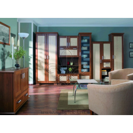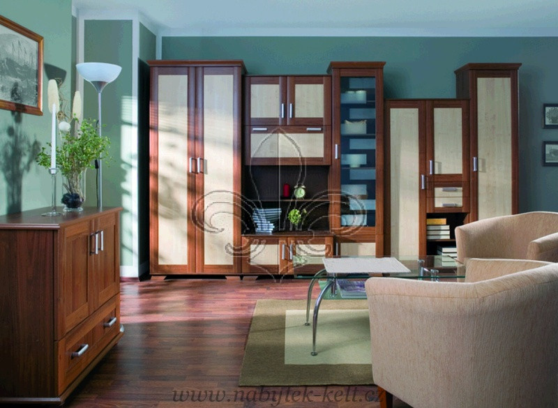 Komoda na obrázku je pouze jako dekorace a k obývací stěně nepatří , dodatečně ji dokoupit lze.