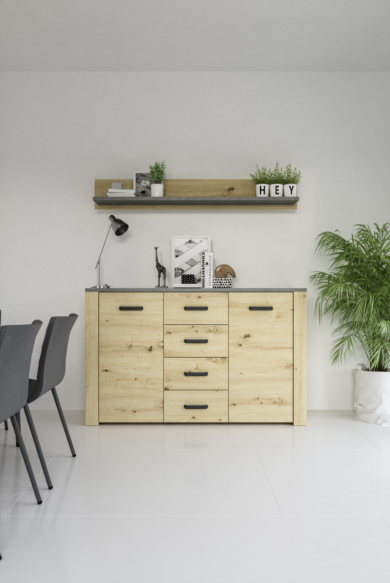 Skříň XL S2D, Dub Artisan + Smooth Grey