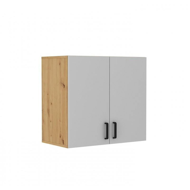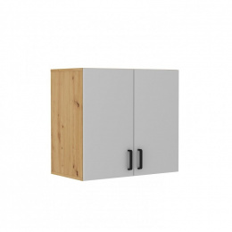 Horní skříňka Matylda 104 s dvířky je vyrobena z lamina v provedení světle šedá a dub artisan. Skříňka je velmi praktická a pojme vše potřebné. Je dodávána v demontu. Součástí balení je montážní návod včetně všech spojovacích prvků.