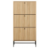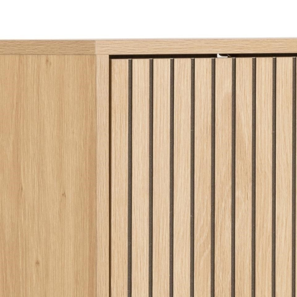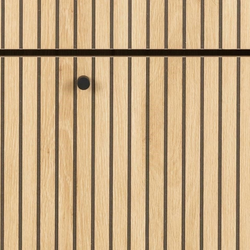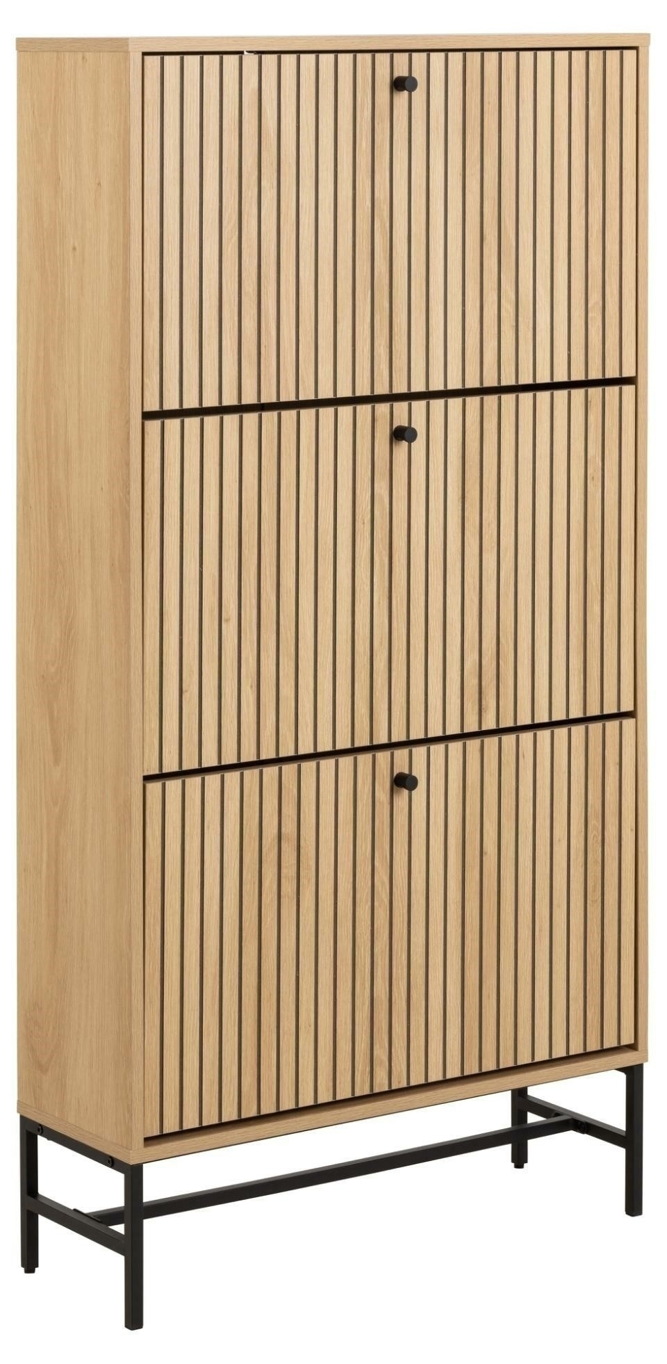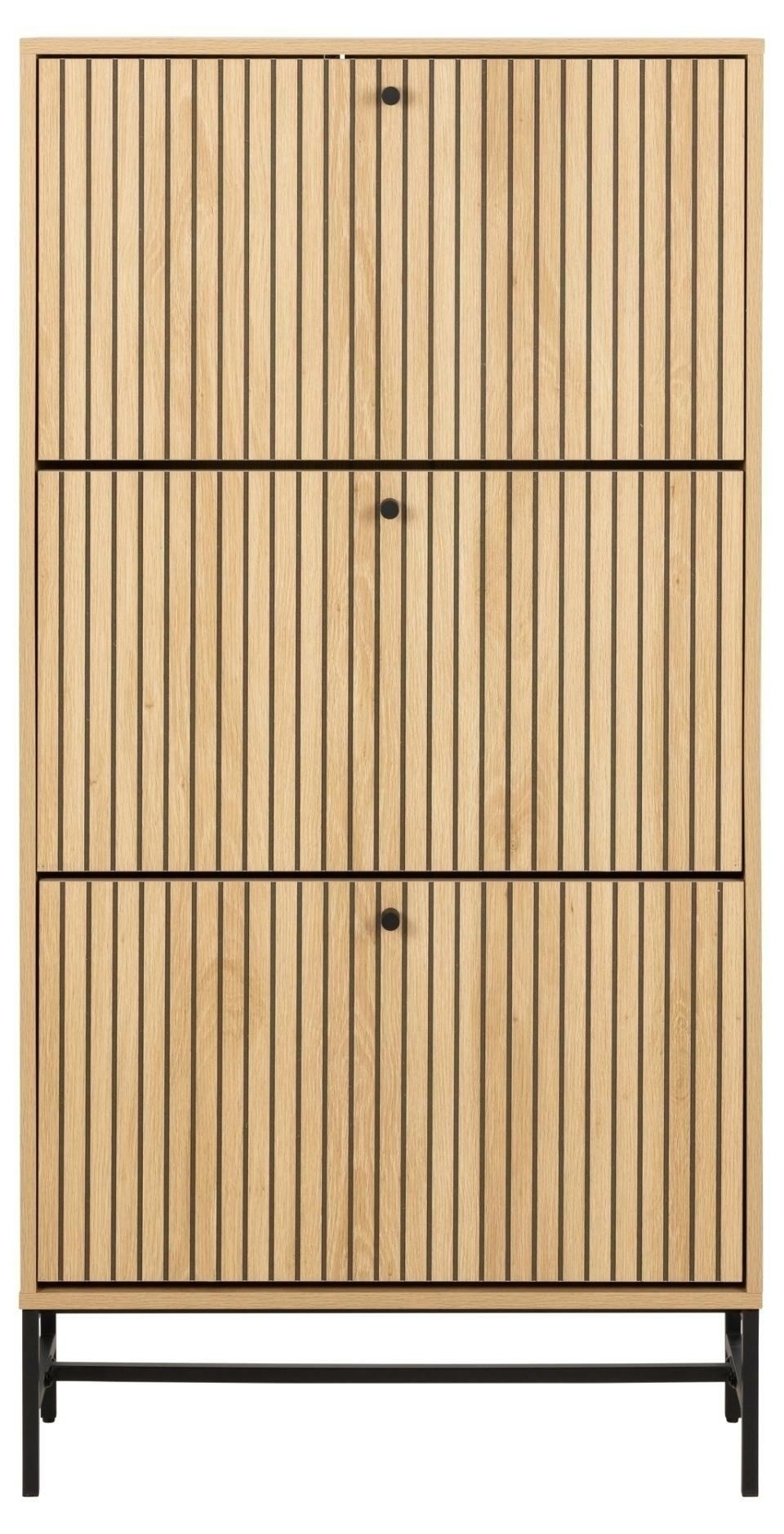 Skříňka na boty s vzhledem přírodního dubu s lamelovým čelem dodá styl a praktičnost do předsíně. Kontrastní vzhled dubu doplněný černými akcenty vytváří dobře vyvážený vizuální efekt. Umístěte skříňku do předsíně, abyste využili prostor a ukládali boty mimo dohled. Skříňka na boty s lamelovým čelem.. Snadno udržovatelný povrch s vzhledem dubu. Certifikát FSC. Navrženo designérem Lasse Cha Pedersenem a chráněno výhradně pro Actona Výška nohou: 18 cm Max. délka boty 35 cm Vyžaduje montáž Rozměry kartonů: 81x69x11 cm váha 17 kg, 151x59x151, váha 16,7 kg