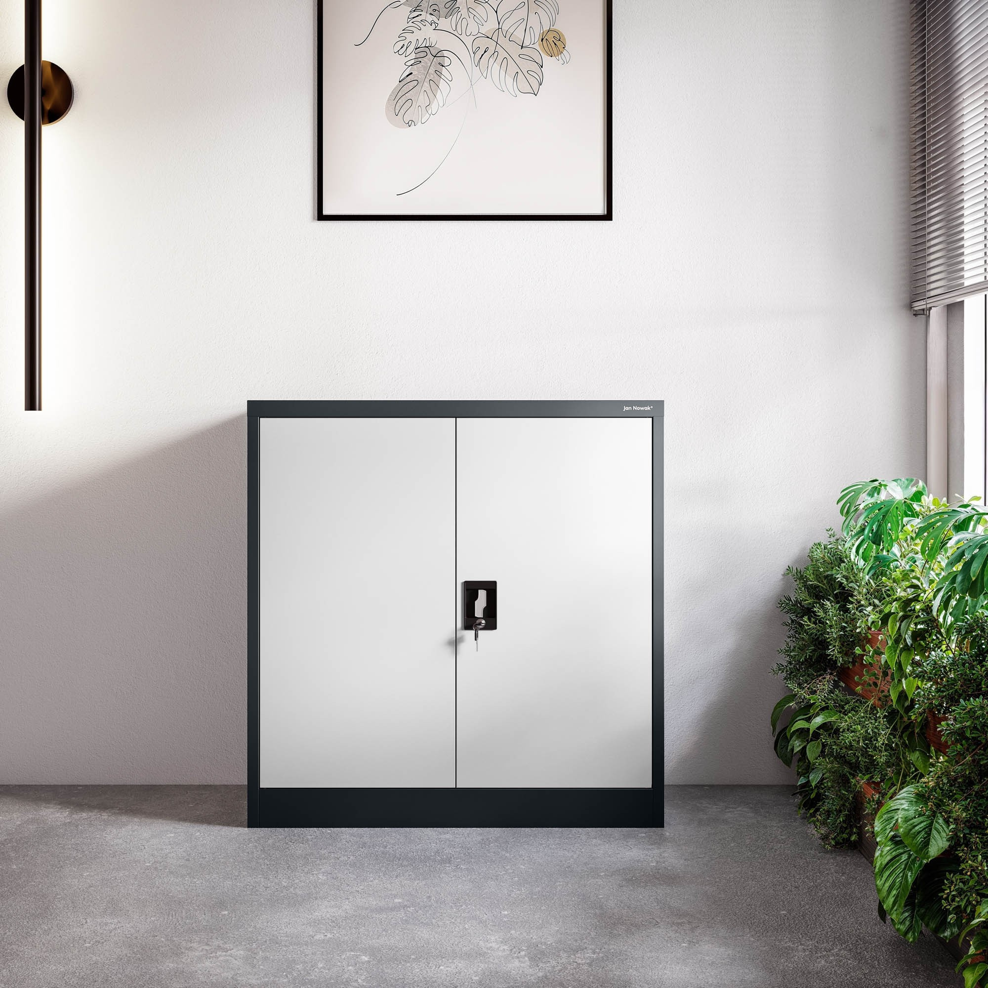 Povrch skříňky je ošetřen práškovým lakem, který nejenže skvěle vypadá, ale také chrání ocel před korozí a mechanickým poškozením. Práškový lak je odolný proti poškrábání a snadno se udržuje v čistotě. Kombinace antracitové a bílé barvy dodává skříňce moderní a elegantní vzhled, který se hodí do každého interiéru.