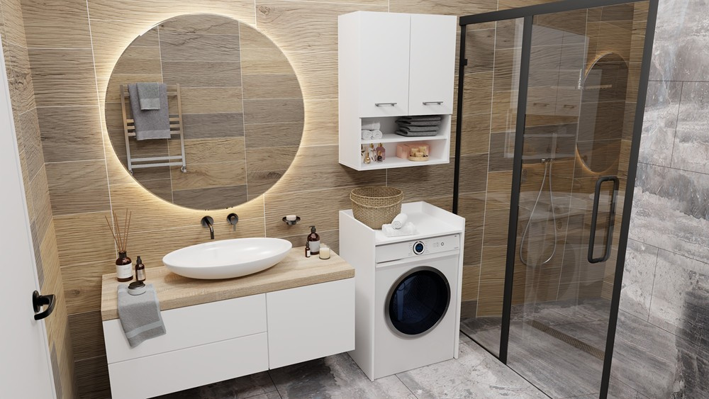 Moderní koupelnová skříňka Pema v minimalistickém designu je dokonalým řešením pro malé koupelny. Splní očekávání všech, kteří oceňují praktická řešení. Skříňka je vyrobená ze snadno udržovatelné laminované desky, hrany jsou povrchově upravené ABS plastem (vyznačuje se vysokou mechanickou a chemickou odolností).