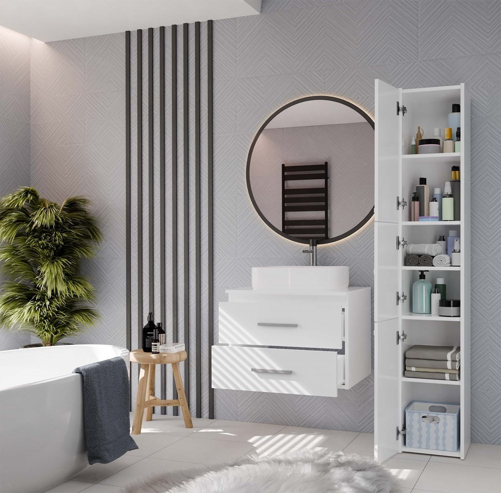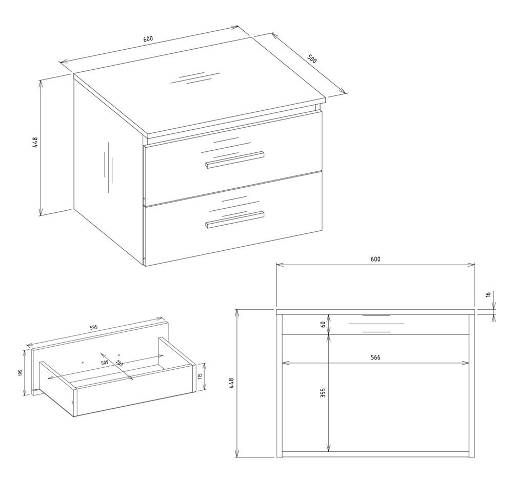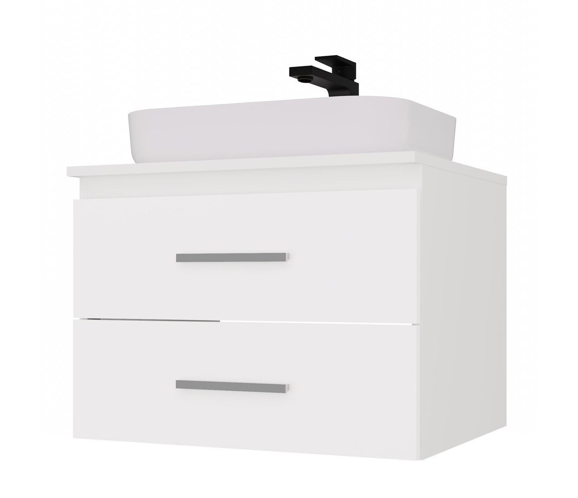 Tato koupelnová skříňka je ideální pro umyvadlo na desku (není součástí balení) a nabízí dvě hluboké zásuvky bez výřezů pro maximální využití prostoru. Doporučujeme použít nástěnný sifon.