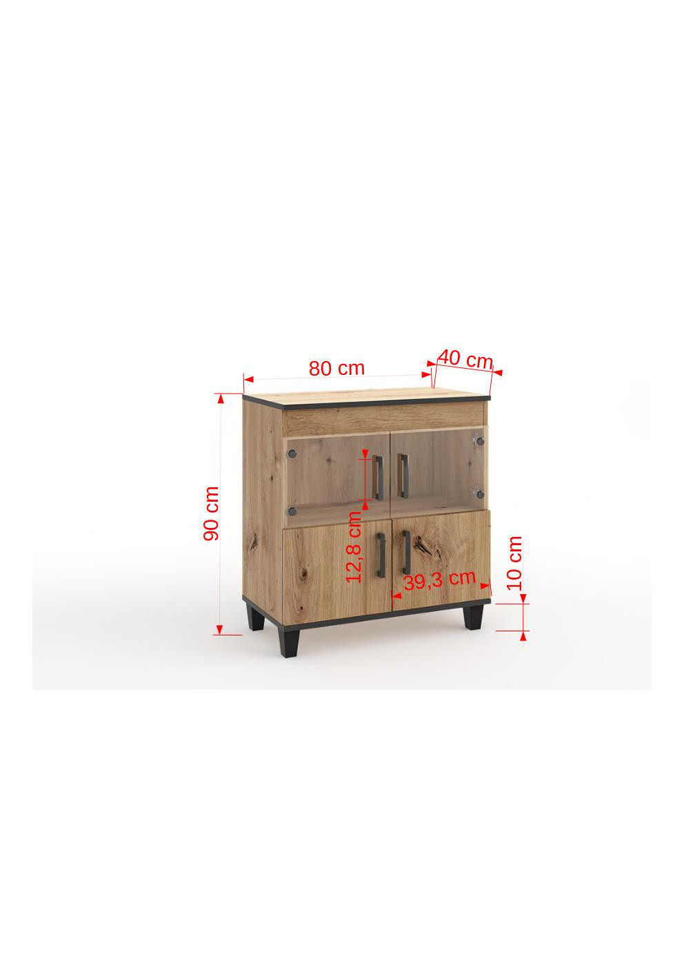Malá skříňka z kolekce POLA je skvělým doplňkem do obývacího pokoje, ložnice nebo předsíně. Poskytuje pohodlné místo pro ukládání. Efekt přírodního dřeva podtrhují doplňky a vložky v černé barvě. Udržovaná v moderním stylu jistě přitahuje pozornost. Jednoduchá, a zároveň funkční. Doporučujeme se seznámit s ostatními produkty z kolekce POLA.