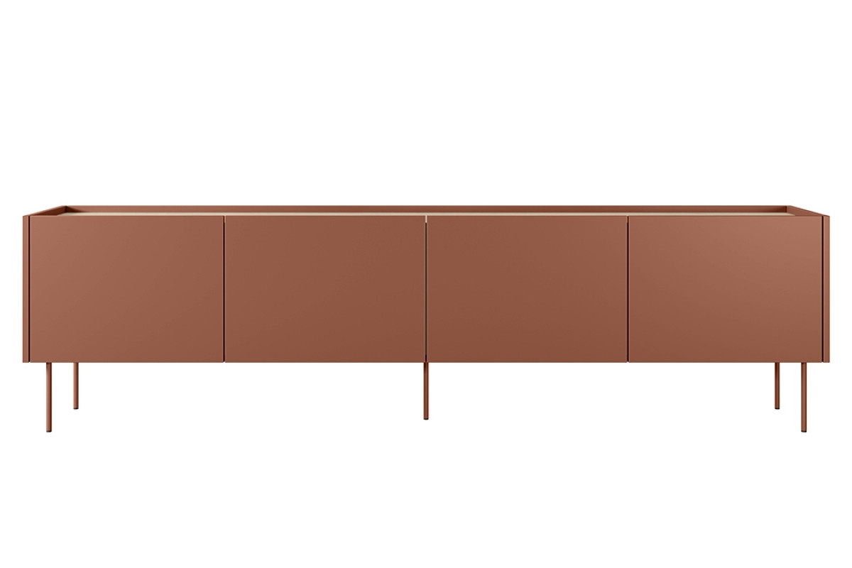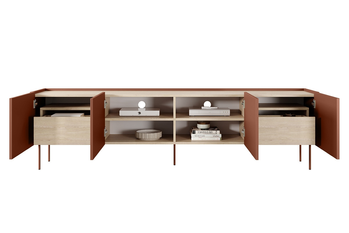 4-dveřová RTV skříňka se 2 skrytými zásuvkami Desin 220 cm - keramická červená / dub nagano, šířka: 220, výška: 60, hloubka: 40, výška nožiček: 20