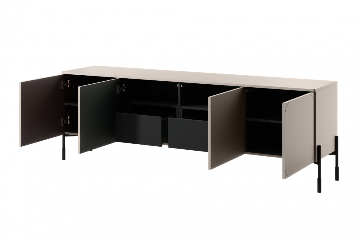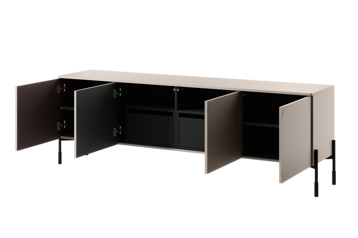 4dveřová RTV skříňka se 2 skrytými zásuvkami Sonatia 200 cm - kašmír, šířka: 204, výška: 65, hloubka: 45, výška nohou: 20, montáž: